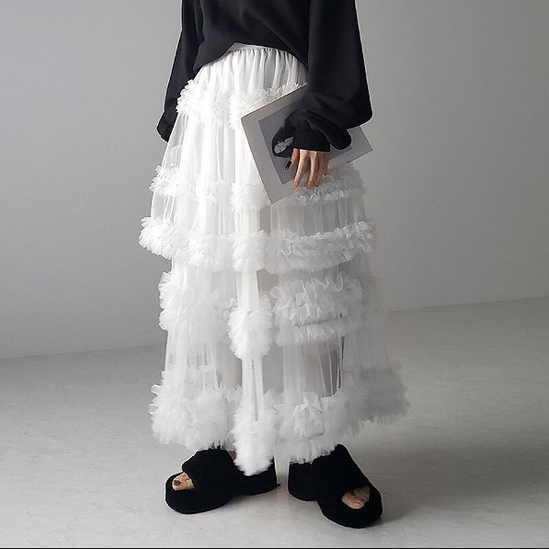 チュールスカート フリル レディース INS 韓国ファッション デザイン 春夏