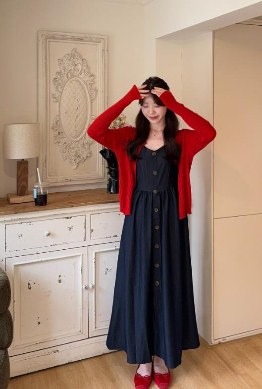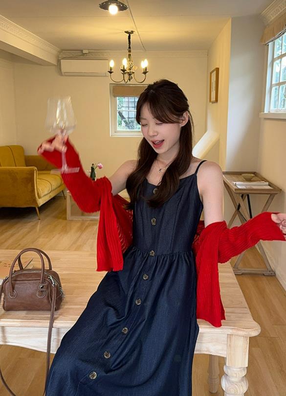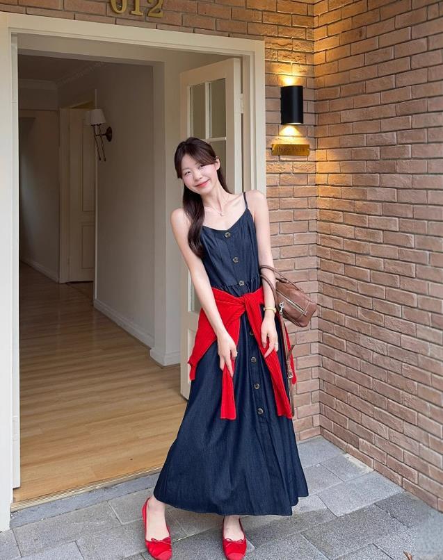 2025春夏新作 女 レディース 袖なし 吊りスカート ロング ワンピース 台型スカート セット