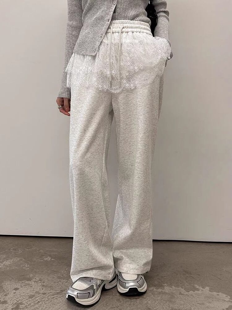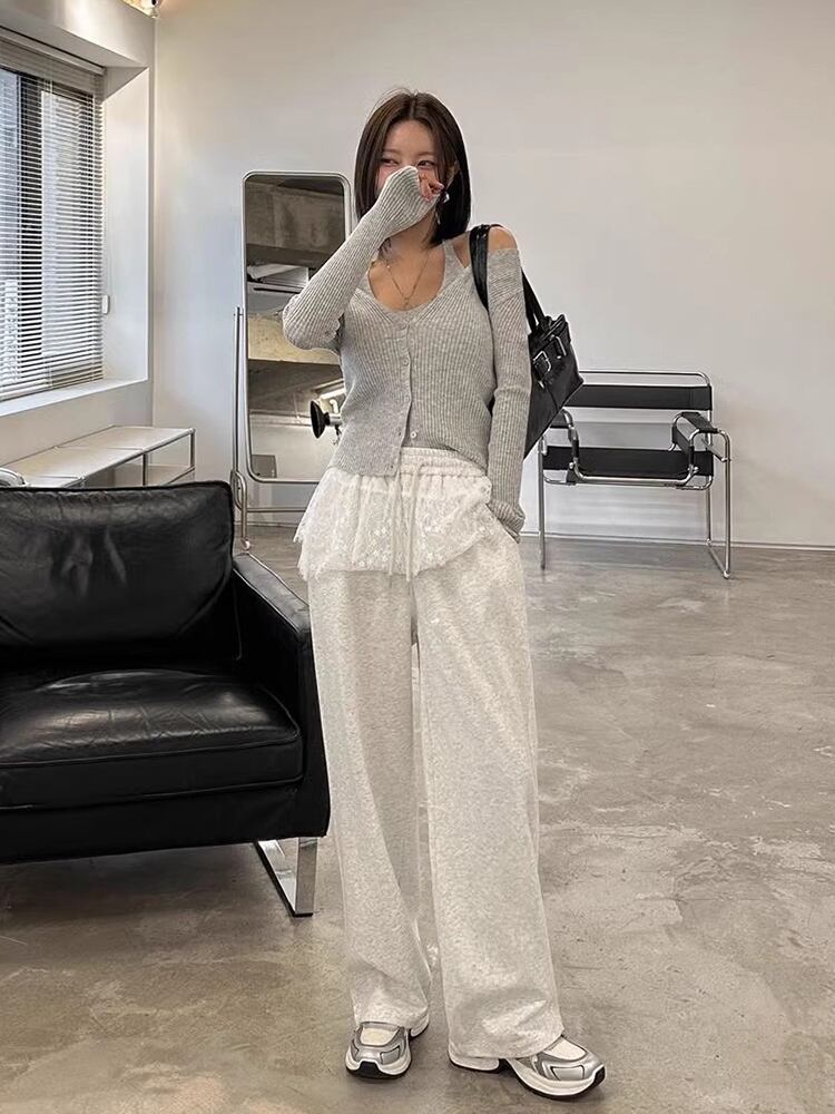 ワイドパンツ レディース 韓国ファッション デザイン かわいい レース