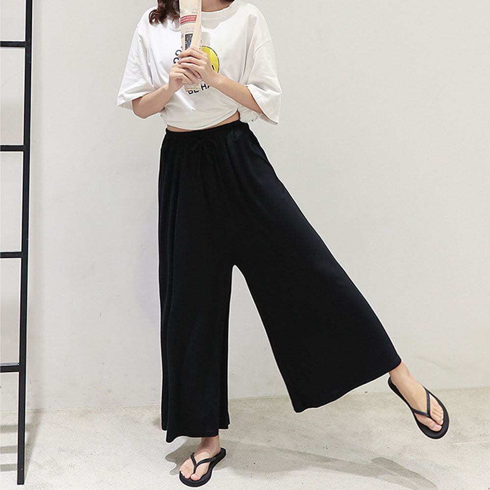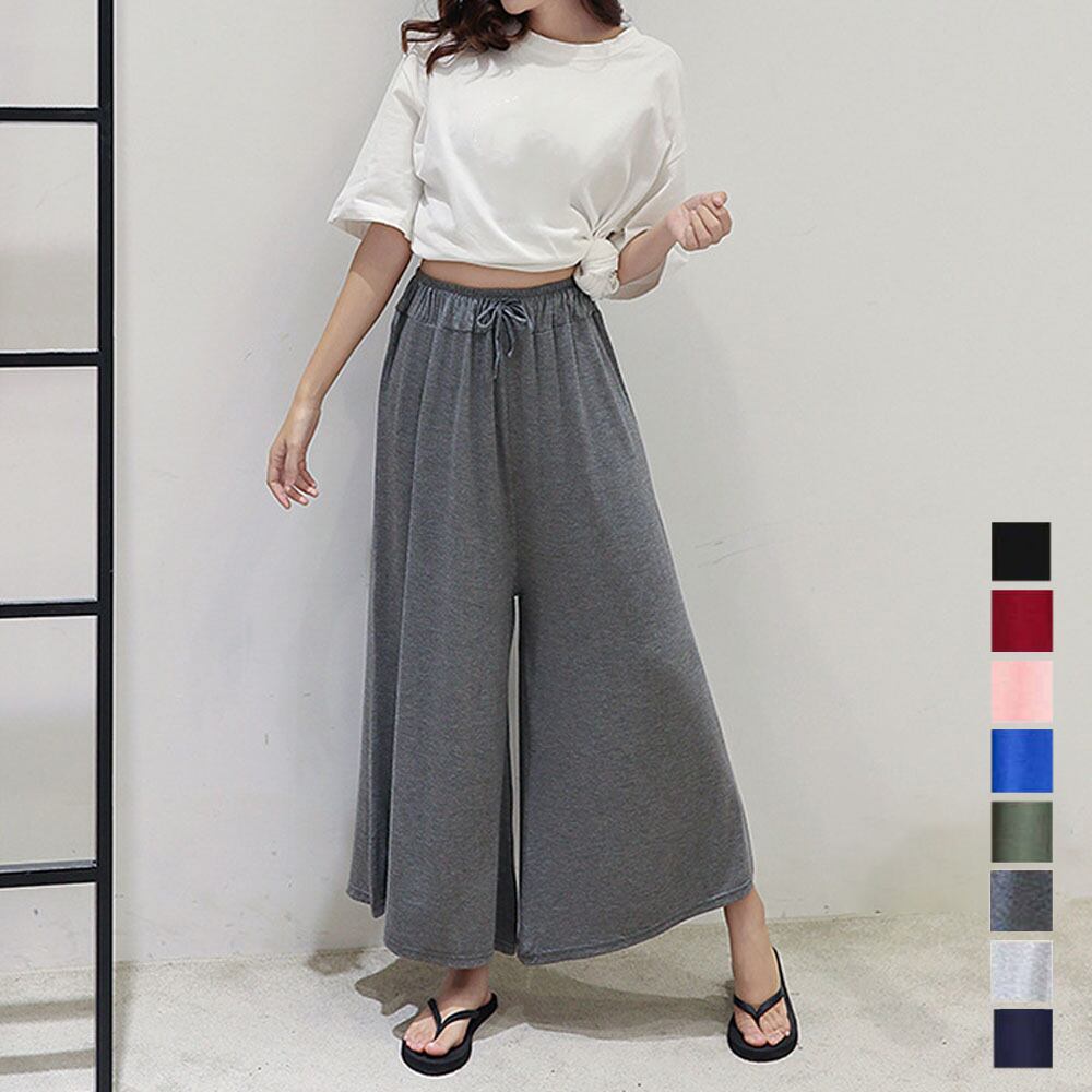 スカーチョ ハイウエスト ゆったりパンツ ウエストゴム 軽やかなフレアパンツ 春夏 スカンツ 体型カバー 美脚 無地薄手
