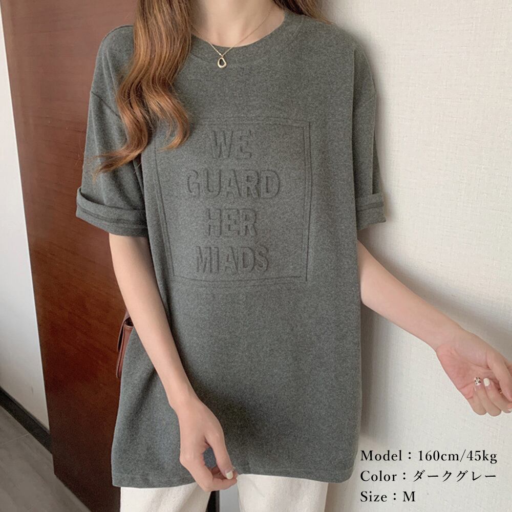 立体ロゴtシャツ 韓国チュニックロンT