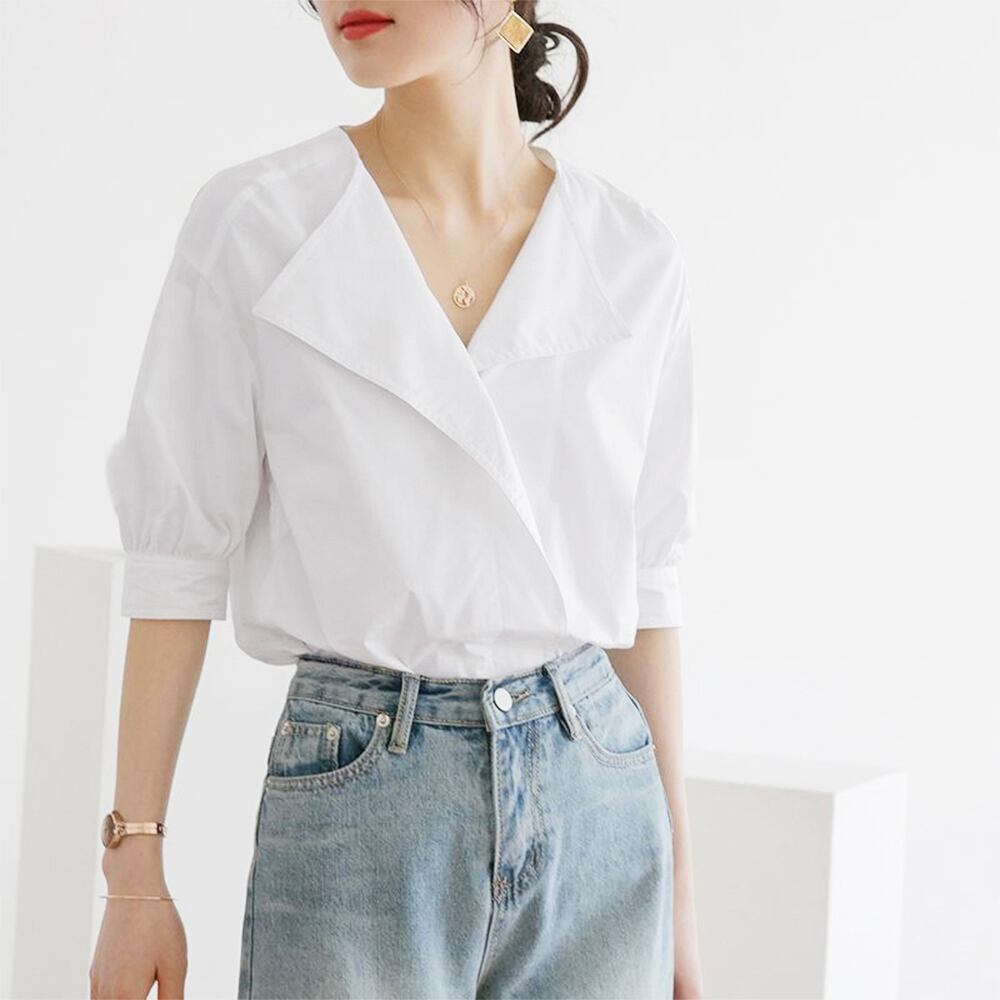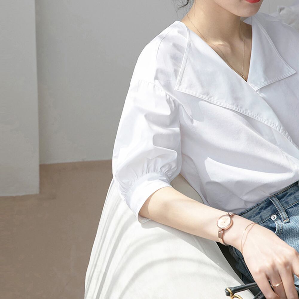 Vネック きれいめ 大人可愛い シャツ レディース オフィスカジュアル 薄手シャツ 通勤OL エレガント 無地カットソー