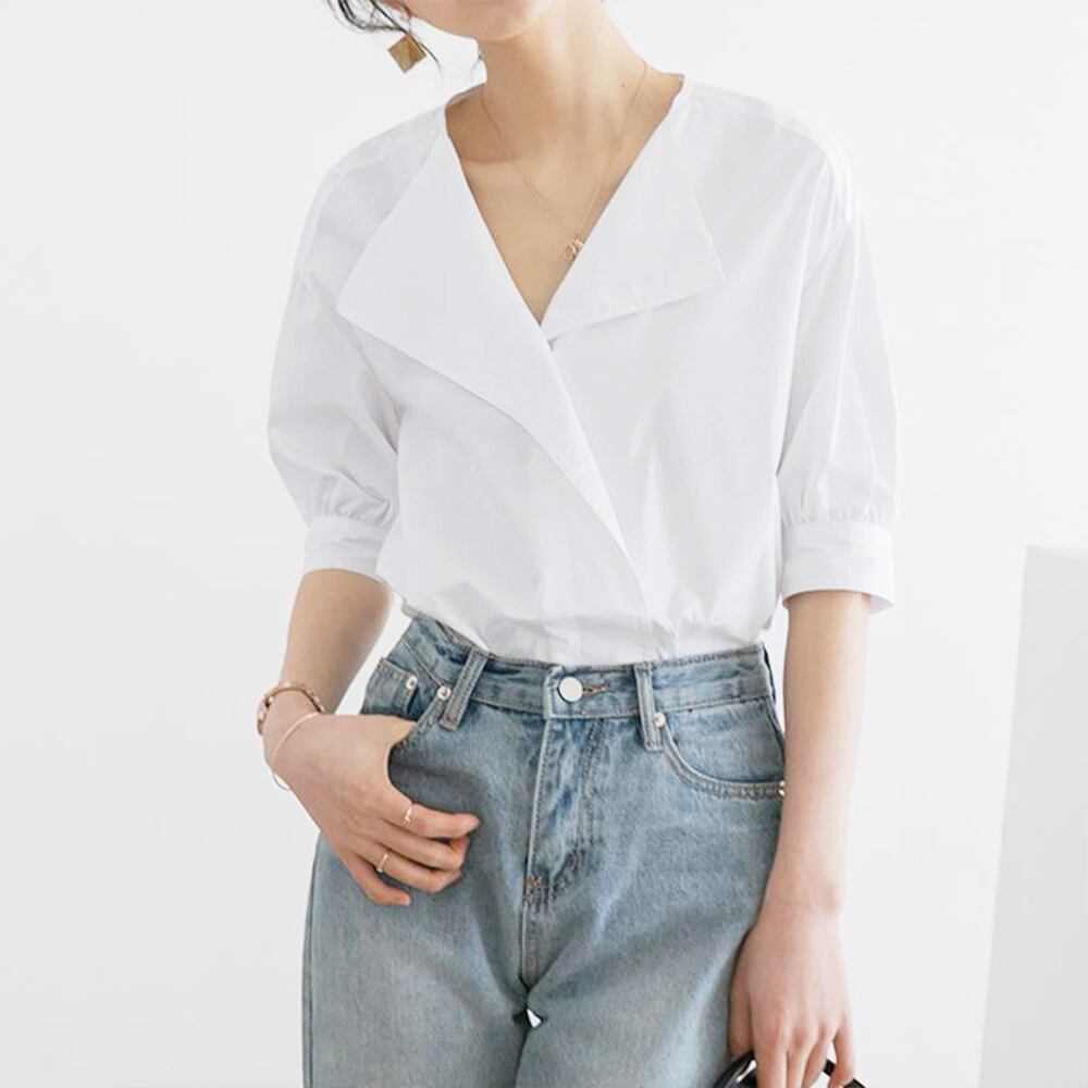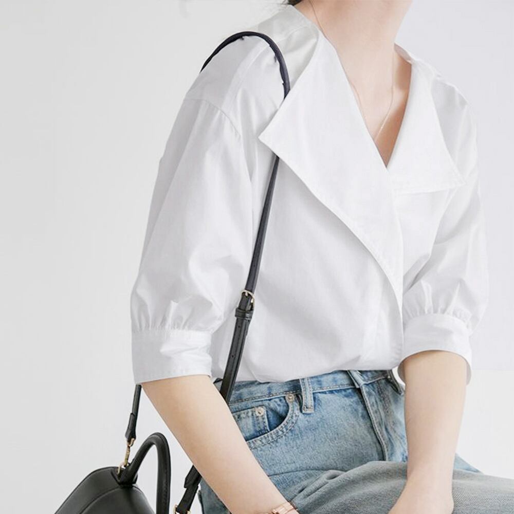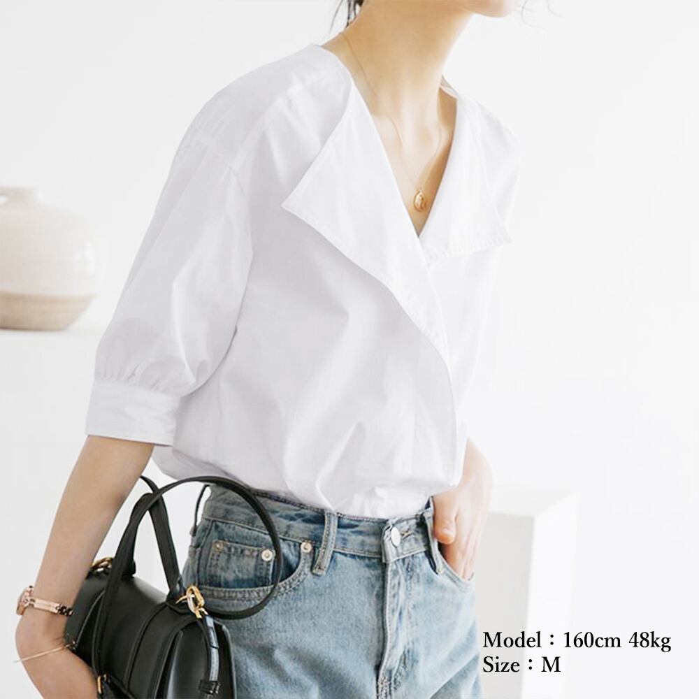軽やかな素材感でソフトな印象をプラスしてくれるフェミニン半袖シャツブラウス