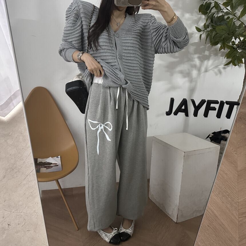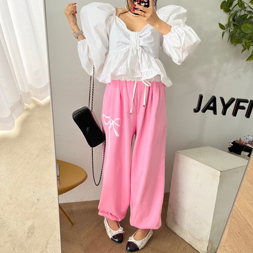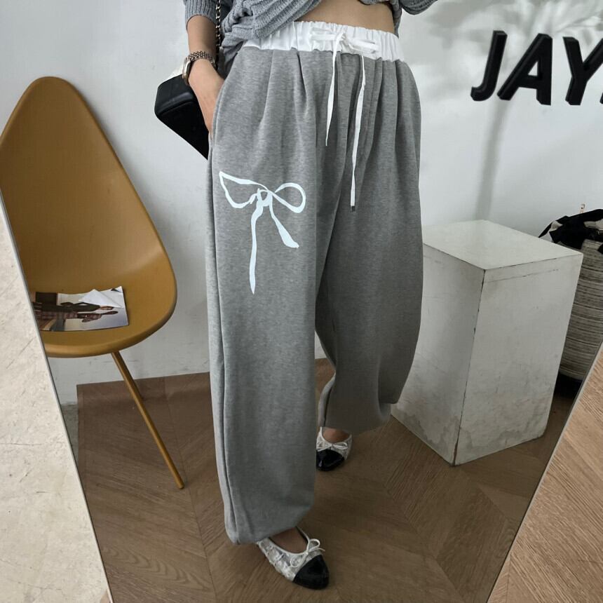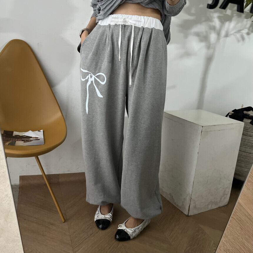 リボンスウェットパンツ デザイン 韓国ファッション かわいい