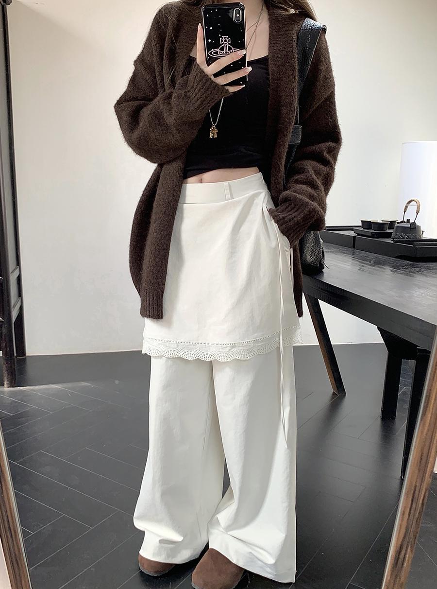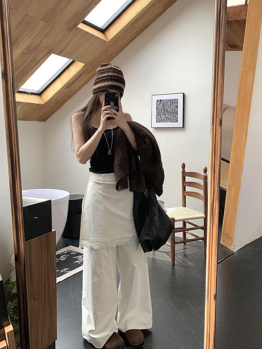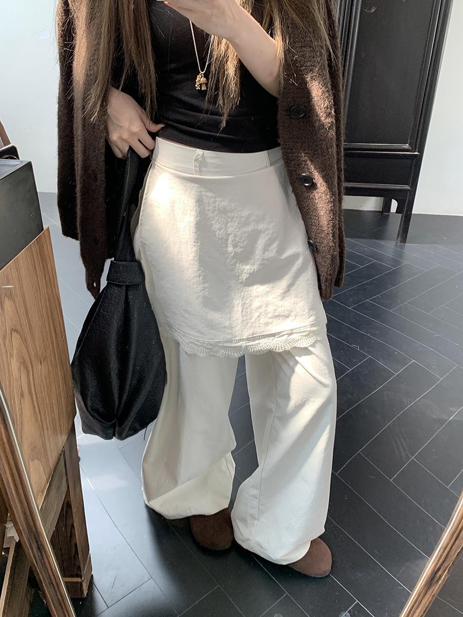 人気商品 2025年春新作 レース拼接 フェイクツーウェイパンツ タイストリングデザイン ロングパンツ