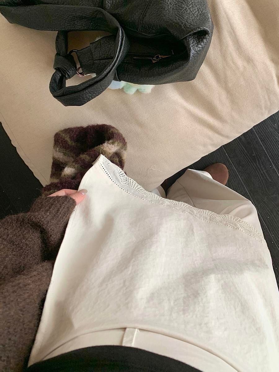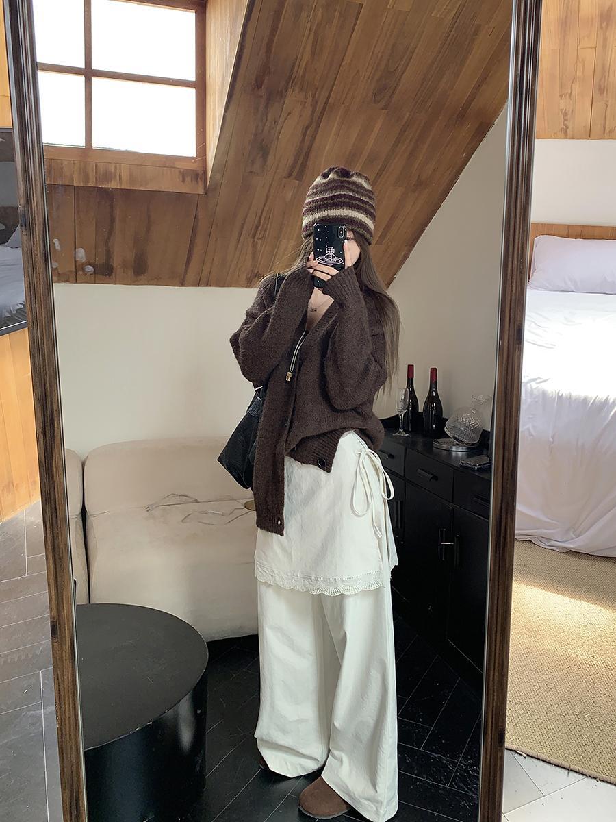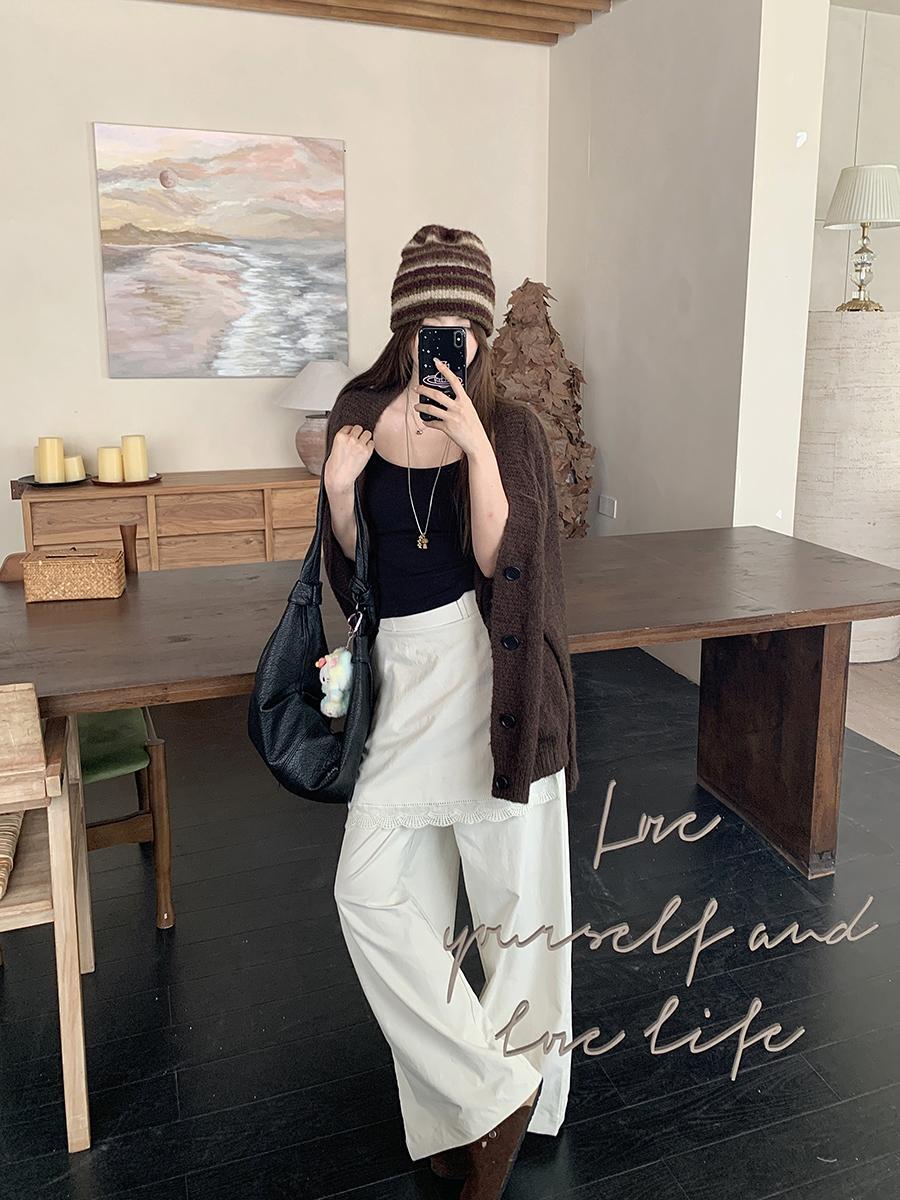 人気商品 2025年春新作 レース拼接 フェイクツーウェイパンツ タイストリングデザイン ロングパンツ
