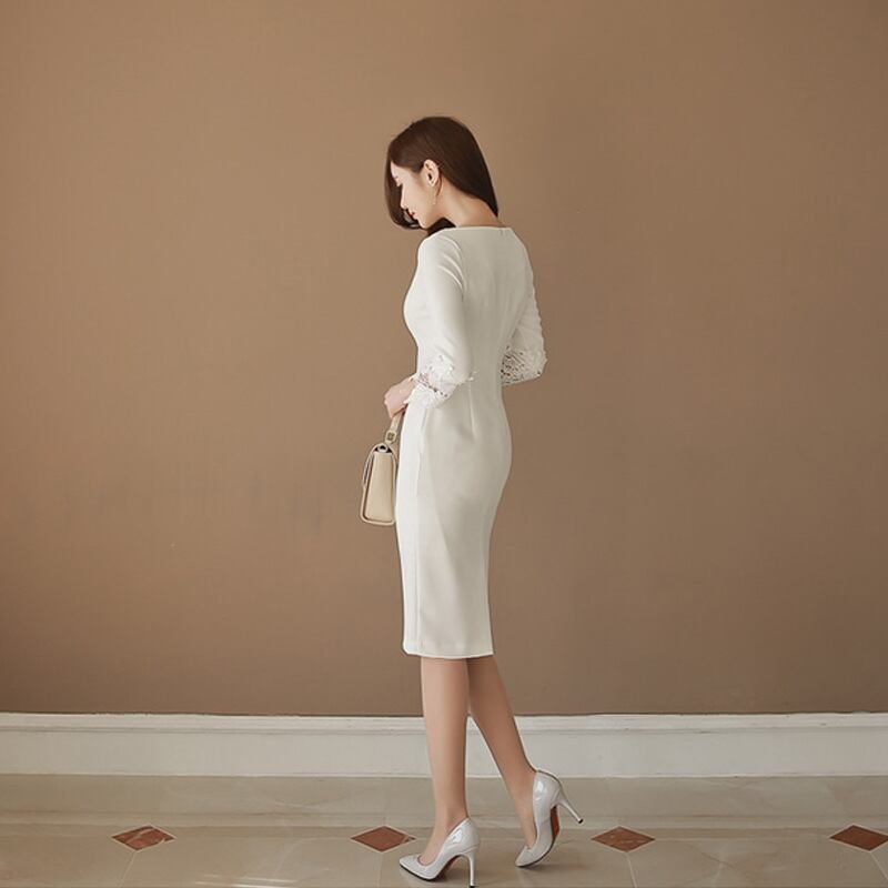 パーティードレス 結婚式 ワンピース ドレス ひざ丈ドレス 切り替え レース フォーマル 結婚式 二次会