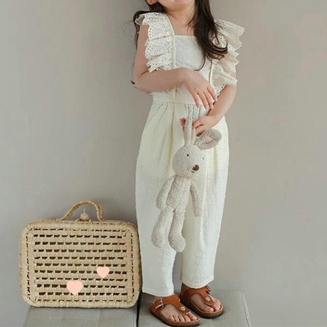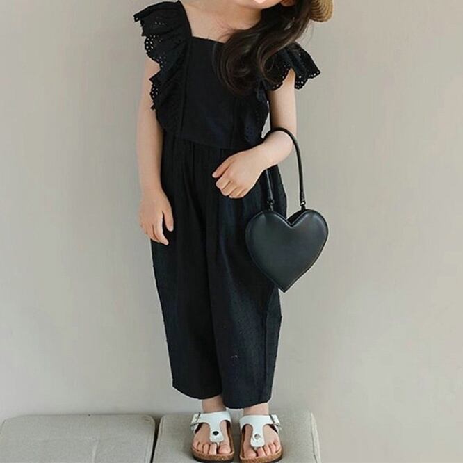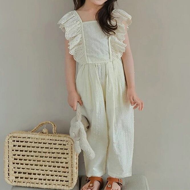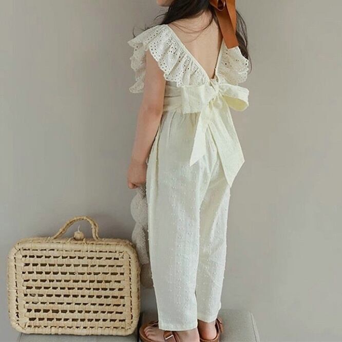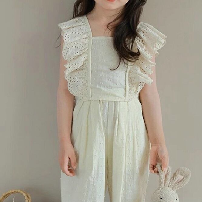 SEC☆子供服 女の子セット レースフリル袖トップス + 9分パンツ 2025夏新作
