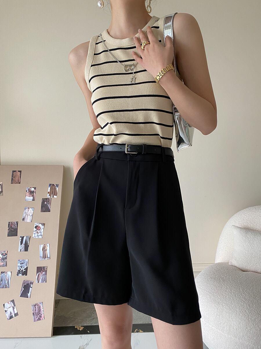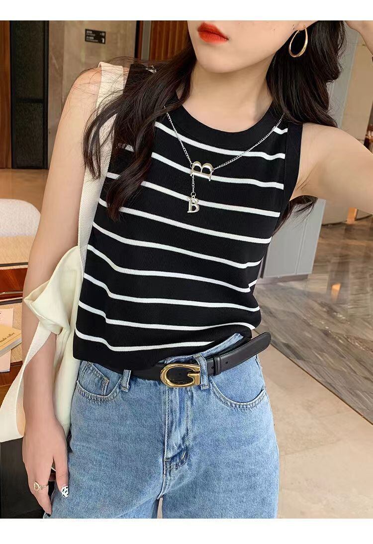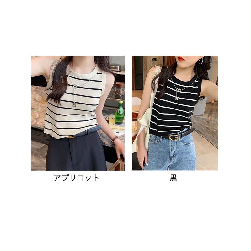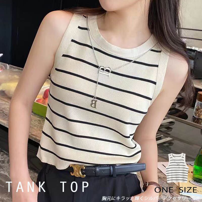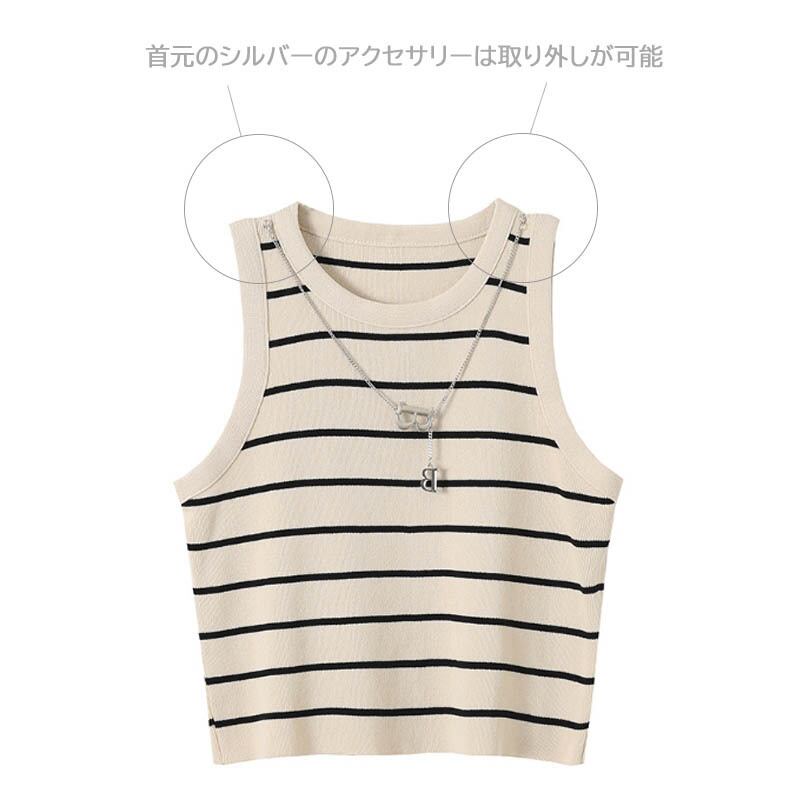レディース ニット タンクトップ アクセサリーつき ノースリーブ インナー ボーダー 着回し