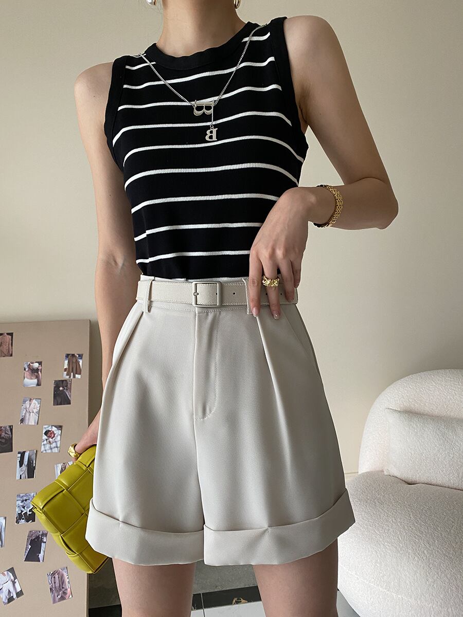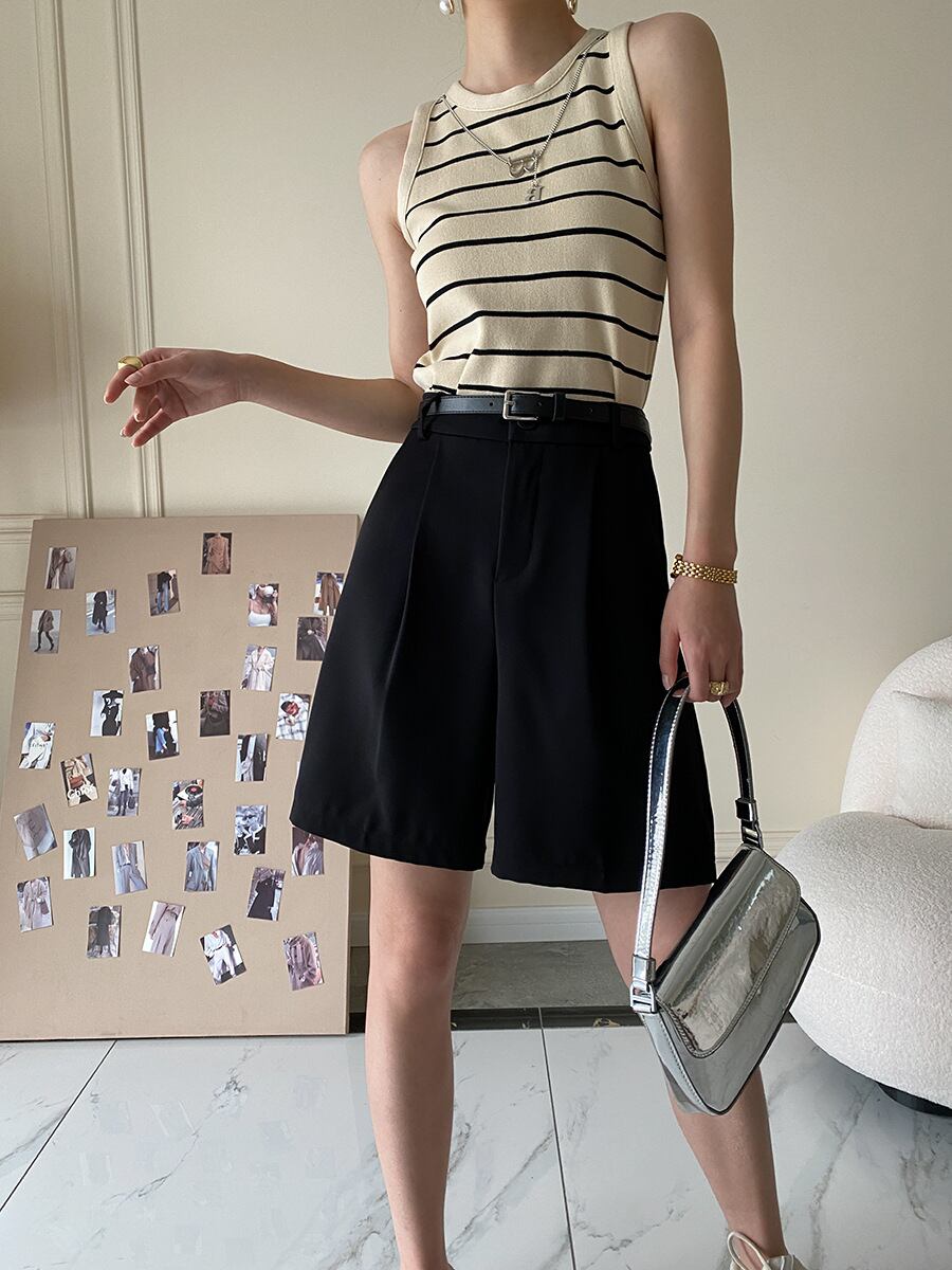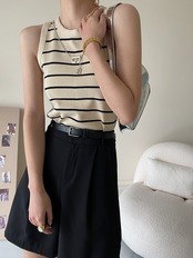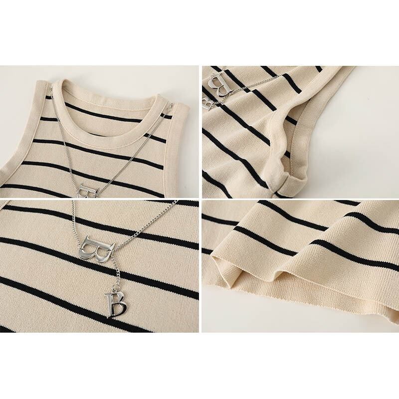 キラッと輝くアクセサリーつきのニットタンクトップ