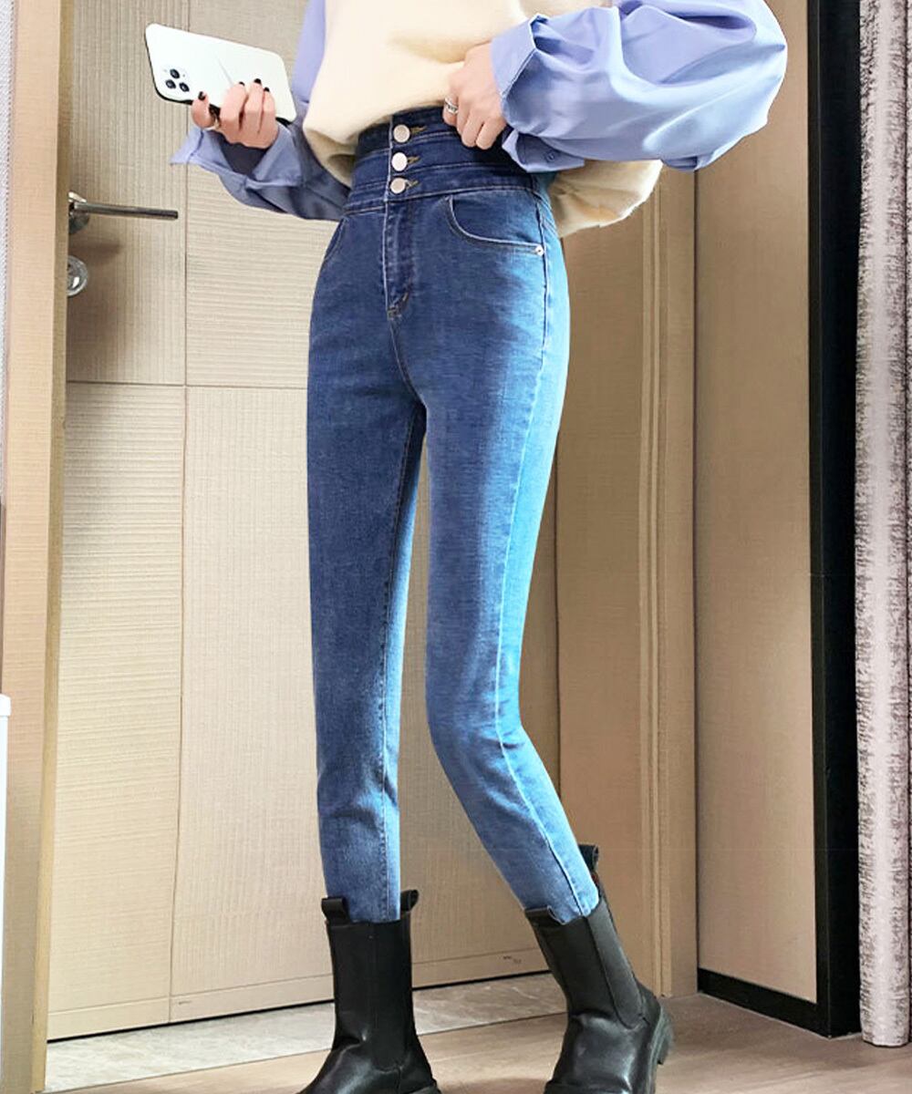 ハイウエスト デニムパンツ 美脚 脚長