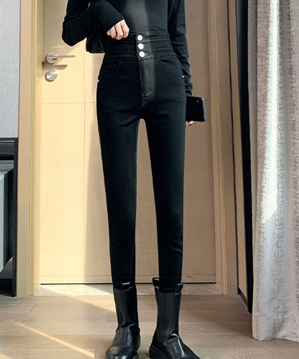 ハイウエストデザインで3つ並んだボタンがアクセントになります。