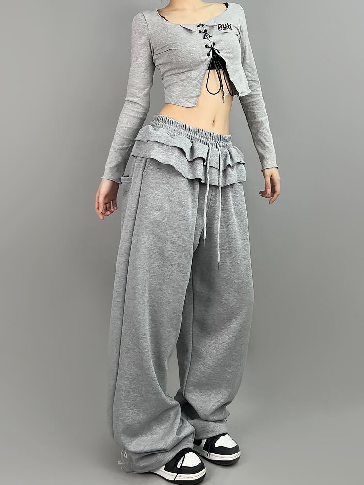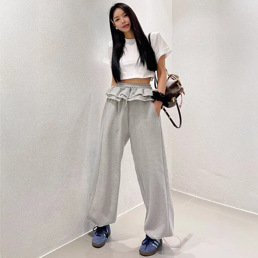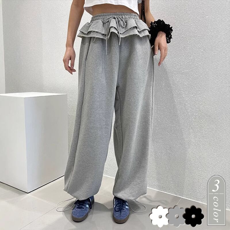 スウェットパンツ レディース INS 韓国ファッション デザイン フリル レイヤード