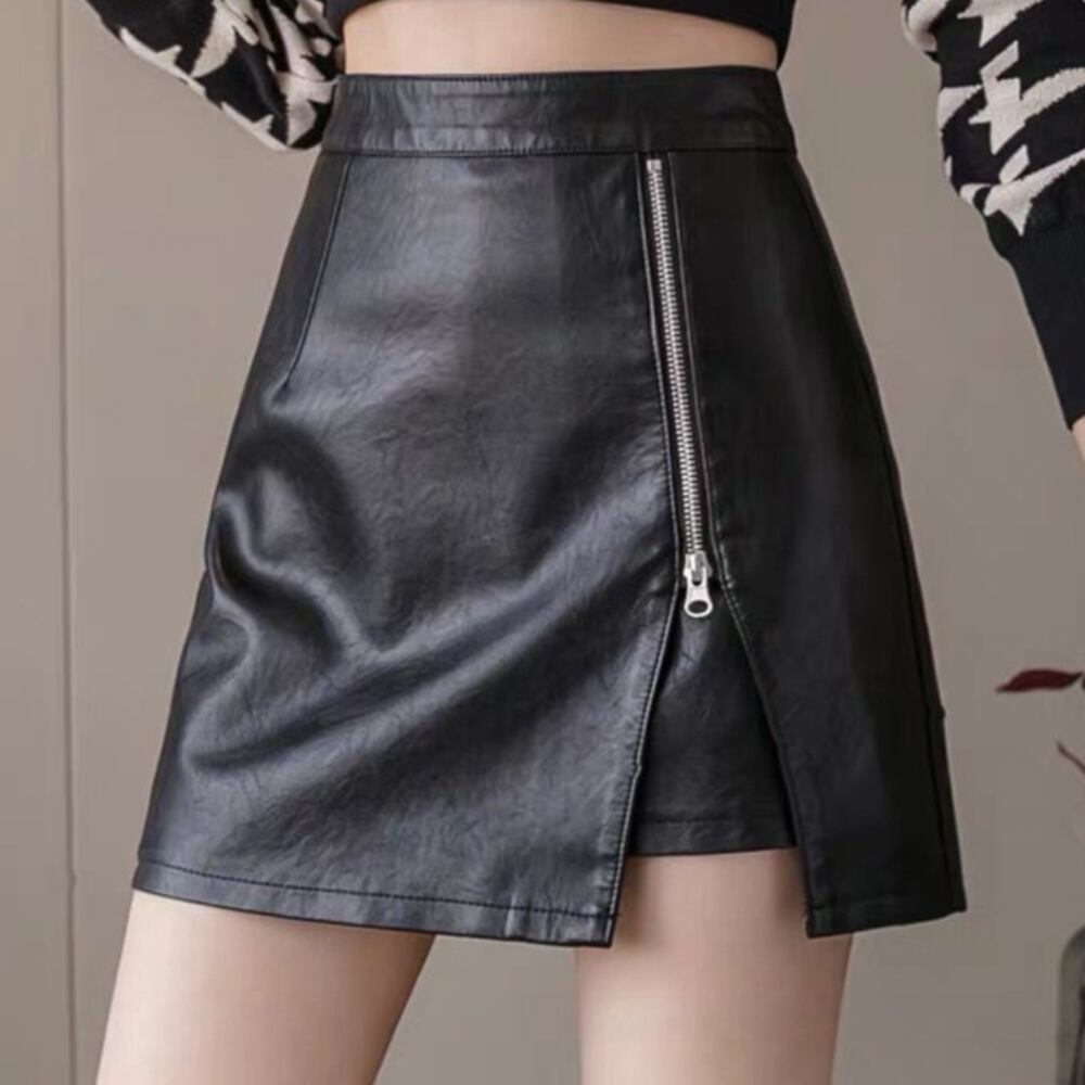 ジップアップPUレザーミニスカートが登場