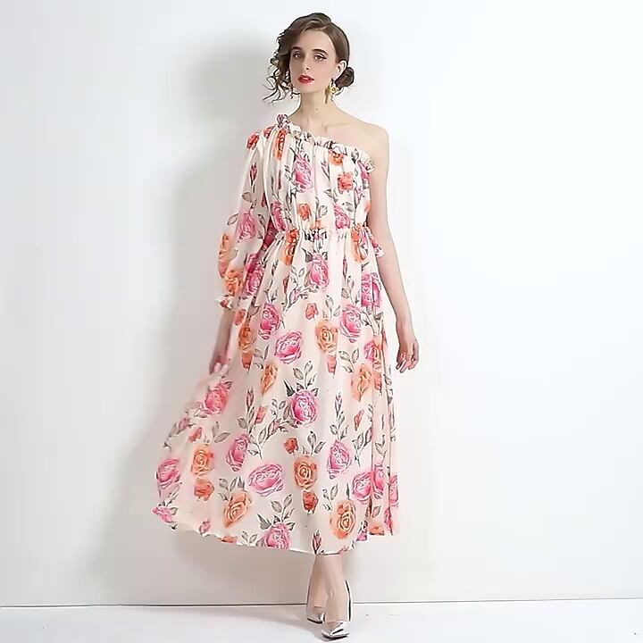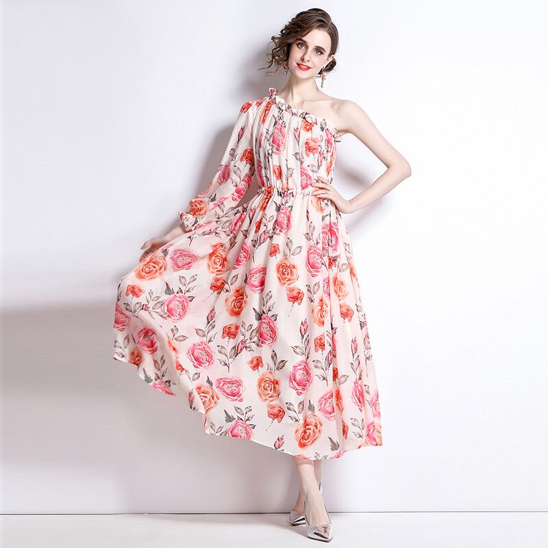 シフォン斜め肩ビーチスカート