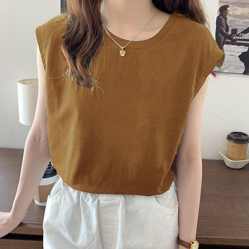 おしゃれ ノースリーブカットソー 無地 クルーネックプルオーバー 韓国ファッショ夏トップス シンプル カジュアルtシャツ