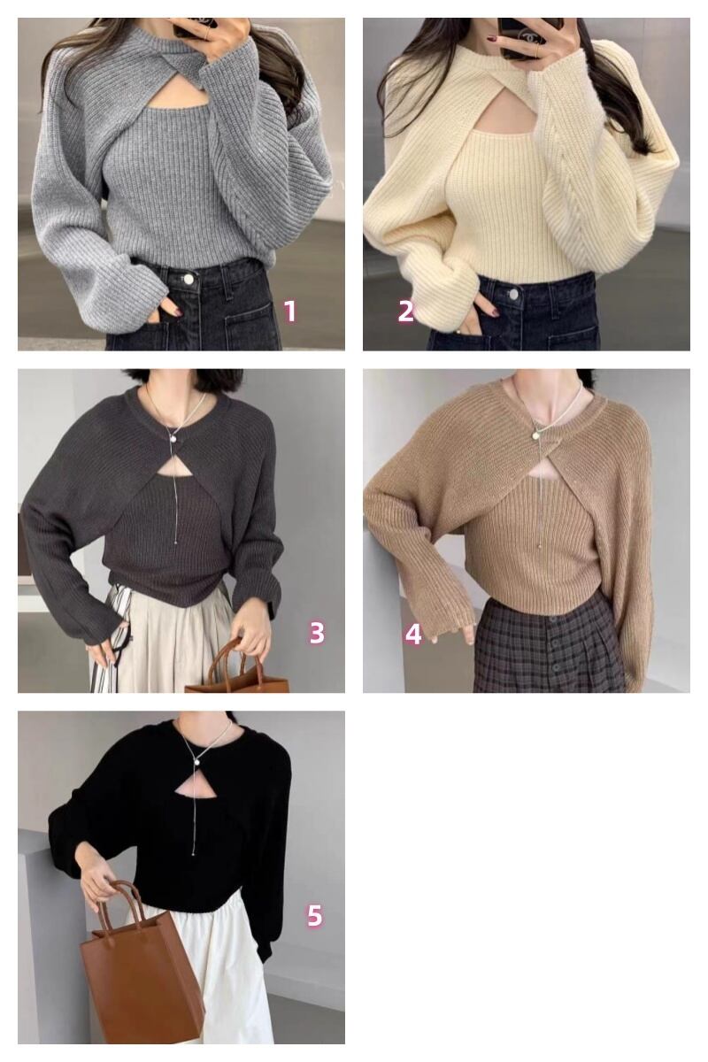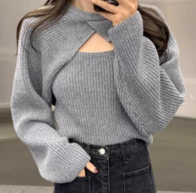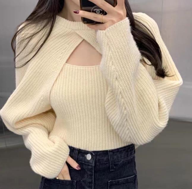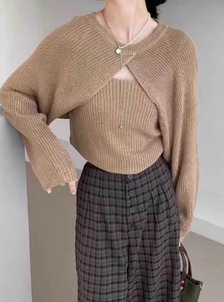 レディース 新作 袖なし Tシャツ トップス インナー ニット キャミソール + コート 2点セット