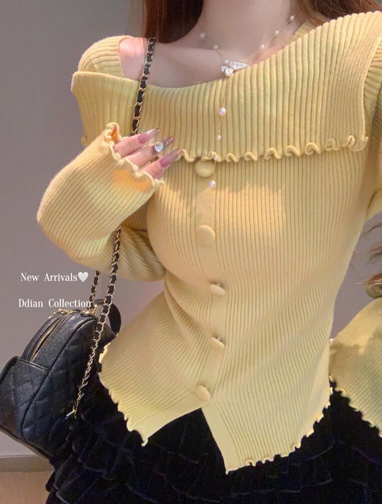 秋冬新作 レディース 長袖 無地 ボートネック ニット Tシャツ トップス インナー カットソー