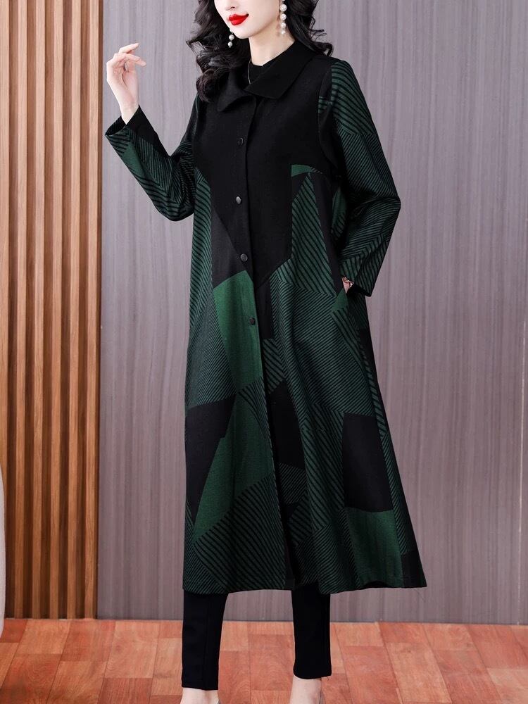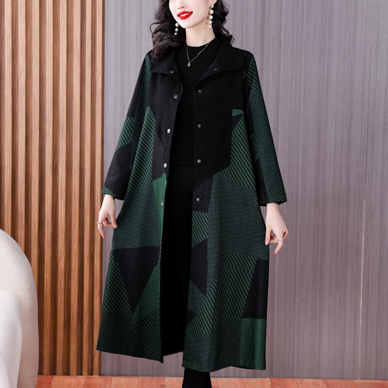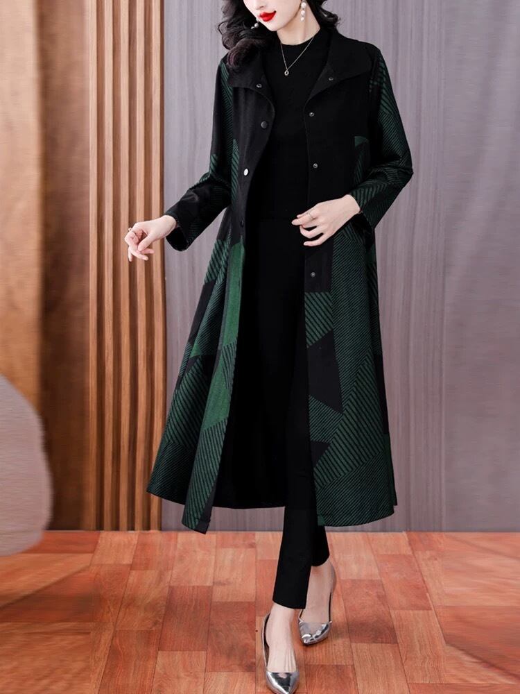 秋冬レディースファッション カジュアル ストライプ 色合わ シャツ風コート