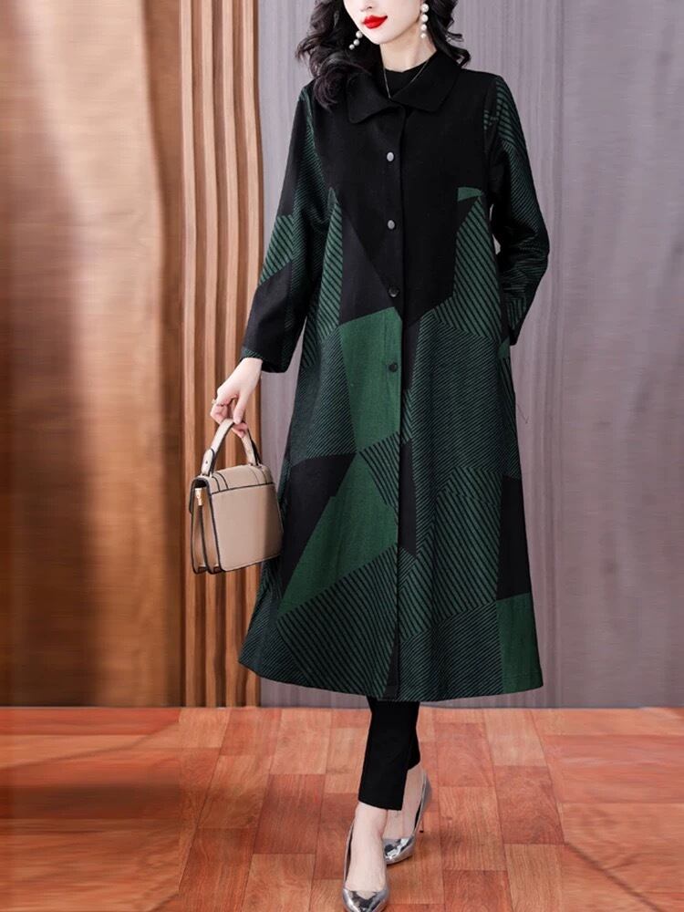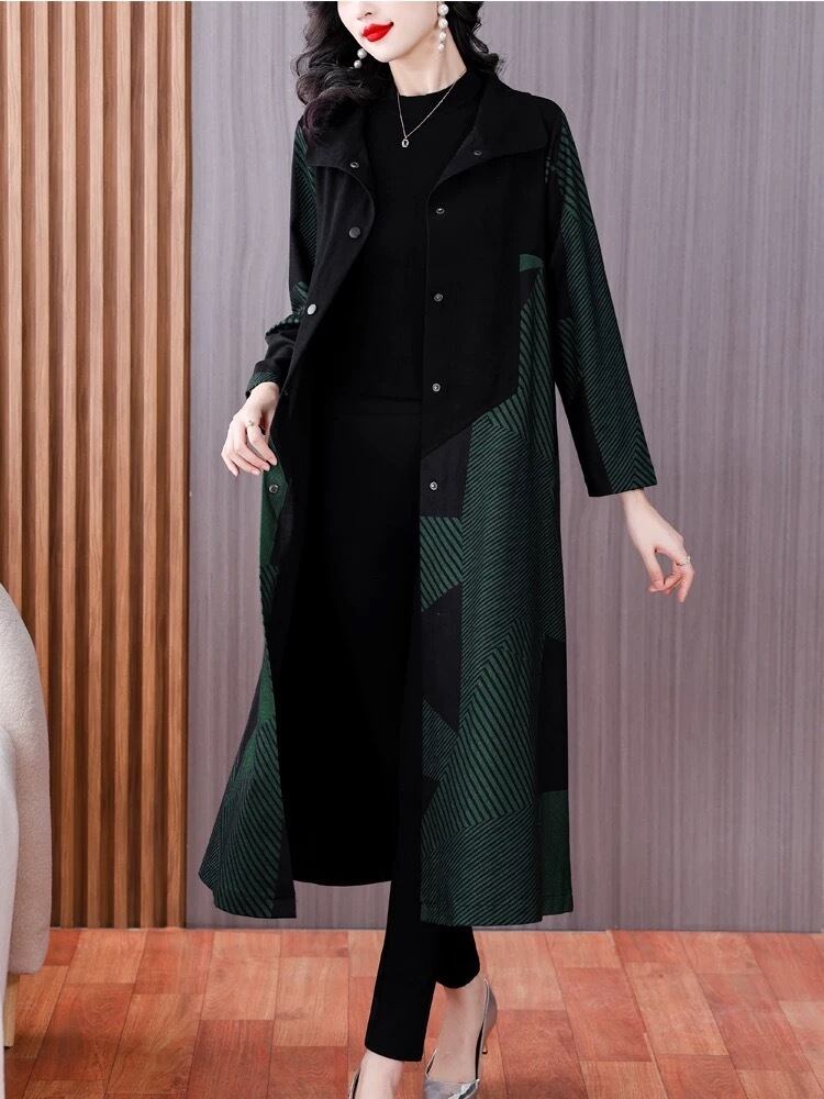 秋冬レディースファッション カジュアル ストライプ 色合わ シャツ風コート