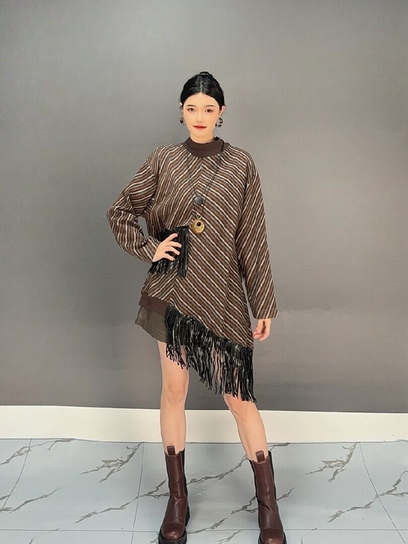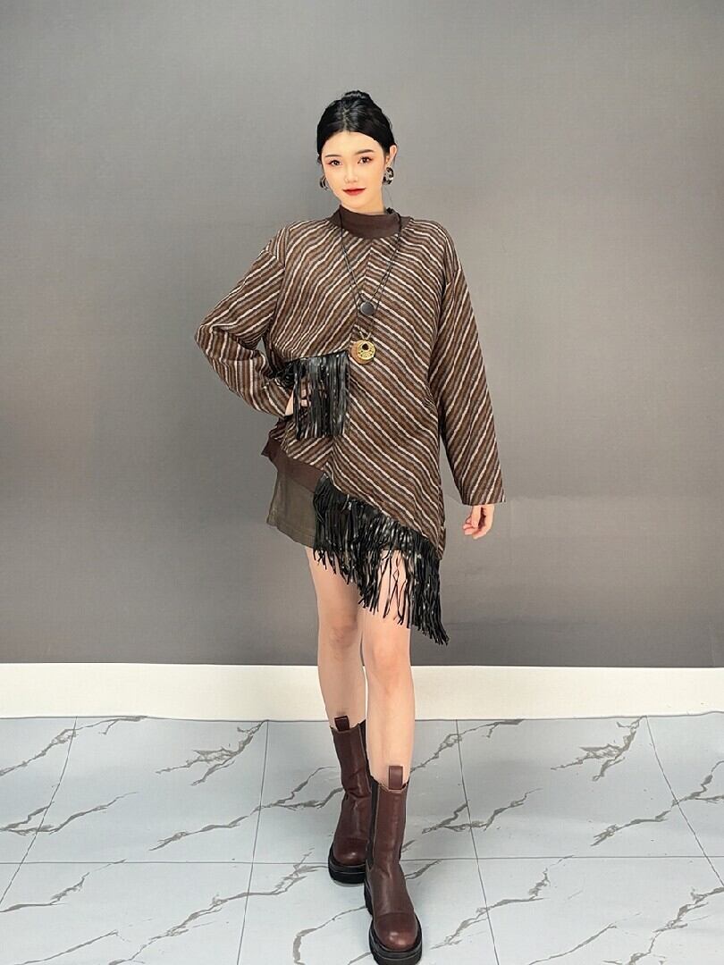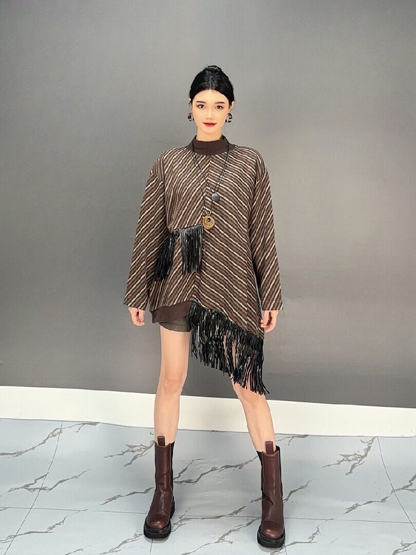 秋冬レディー秋冬レディースファッション ニットセーター フリンジ アンバランス 人気トップススファッション ニットセーター フリンジ アンバランス 人気トップス
