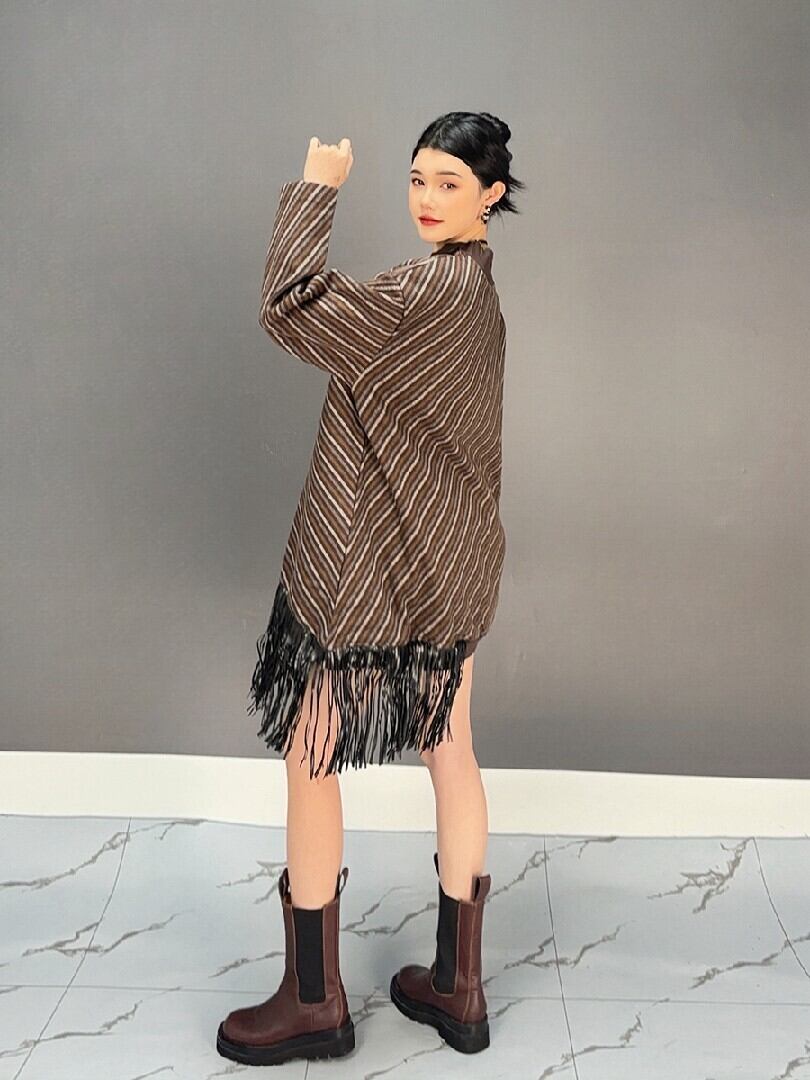 このニットセーターは、デイリーユースからちょっとしたお出かけまで活躍するマルチアイテムです!スタイルを引き立てるフリンジが、リラックス感をプラスしつつ、おしゃれを楽しむ方にぴったりのデザインです。ぜひ、お気に入りのアイテムと組み合わせて、あなたらしいコーディネートを楽しんでください!
