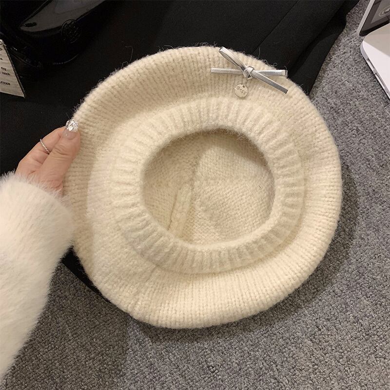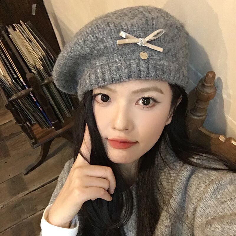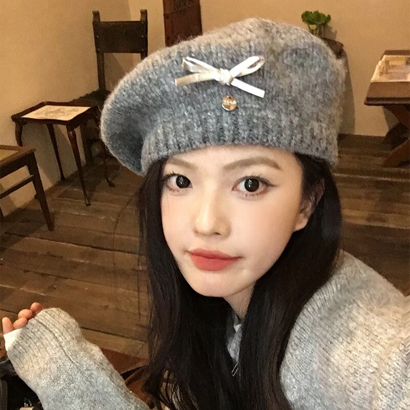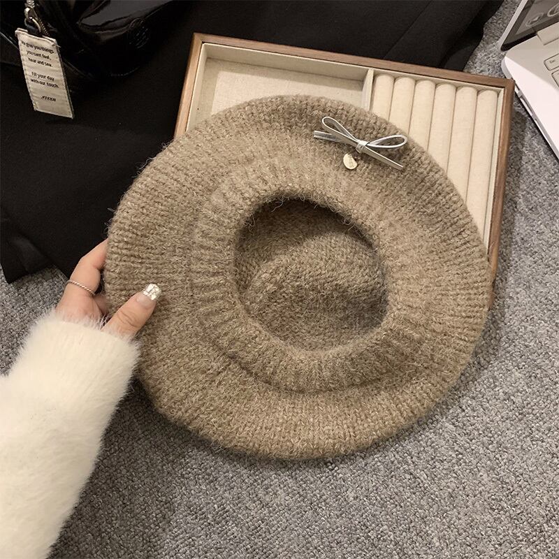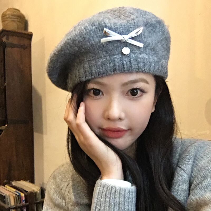 帽子 リボンニットベレー帽 レディース 韓国ファッション 秋冬