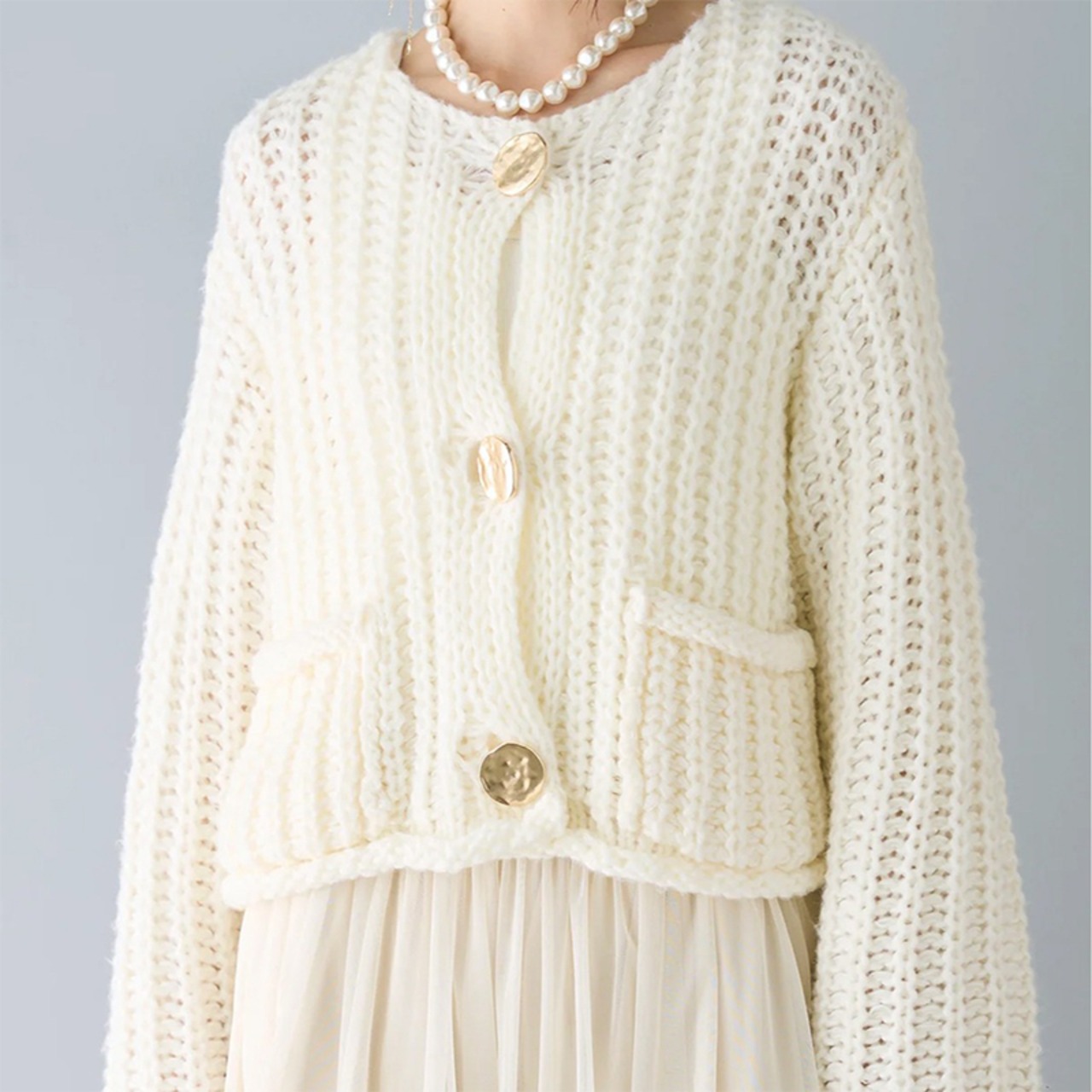 着心地にもこだわったニット素材は、柔らかくしなやかで、ストレスフリーな着用感を提供します。デイリーユースから特別な日のコーディネートまで、幅広いシーンで活躍すること間違いなしの一着です!