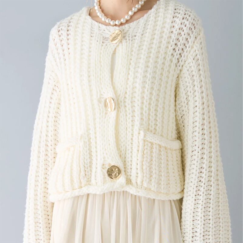 ANJILの春秋冬版、編み込みレースの丸襟長袖ニットセーターが登場です。繊細な編み込みデザインと優しいカラーが魅力的で、どんなスタイルにも上品さを加えます。ラウンドカラーが顔周りを華やかに演出し、長袖デザインで暖かさも確保。寒い季節にぴったりのアイテムです。
