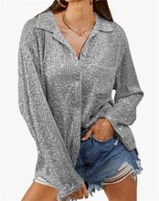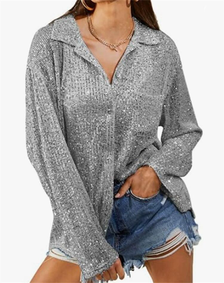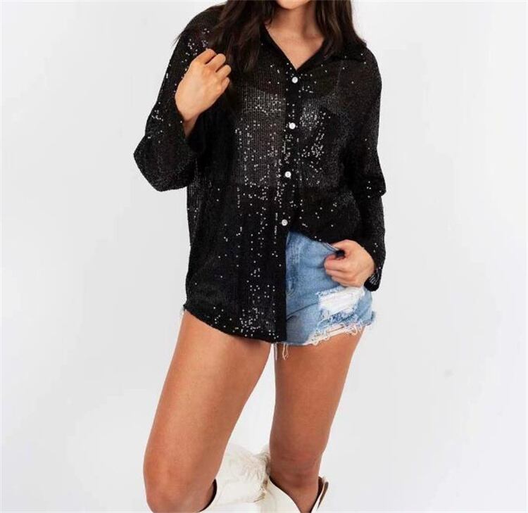 品質いいな新品 ブラウス スパンコール 洗練された 長袖 ゆったりする トップス 単体ボタン カジュアル