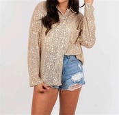 ブラウス スパンコール 洗練された 長袖 ゆったりする トップス 単体ボタン カジュアル