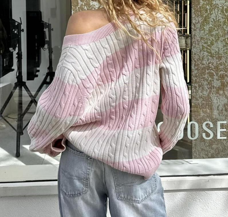 秋冬新作 レディース 女 長袖 ニット ボーダー柄 セーター Tシャツ トップス インナー カットソー