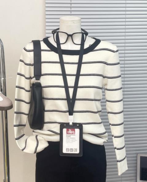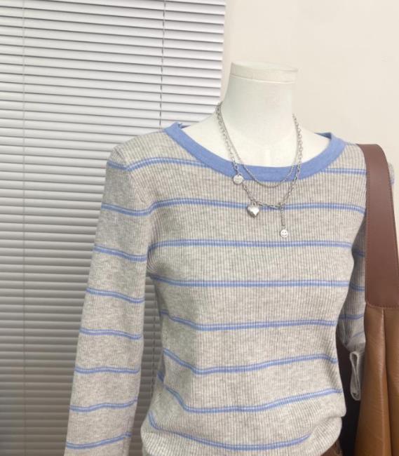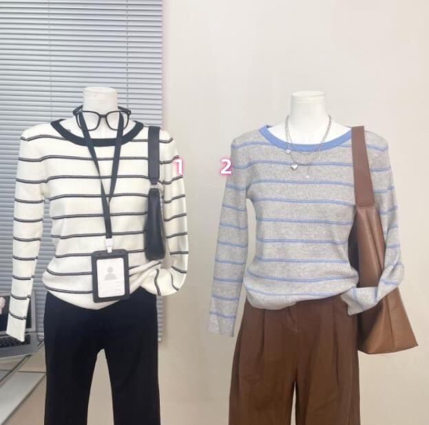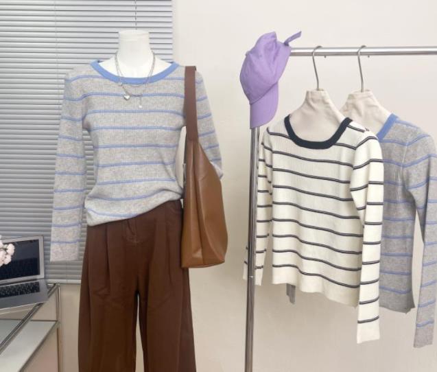 秋冬新作 レディース 女 長袖 ニット ボーダー柄 Tシャツ トップス インナー カットソー