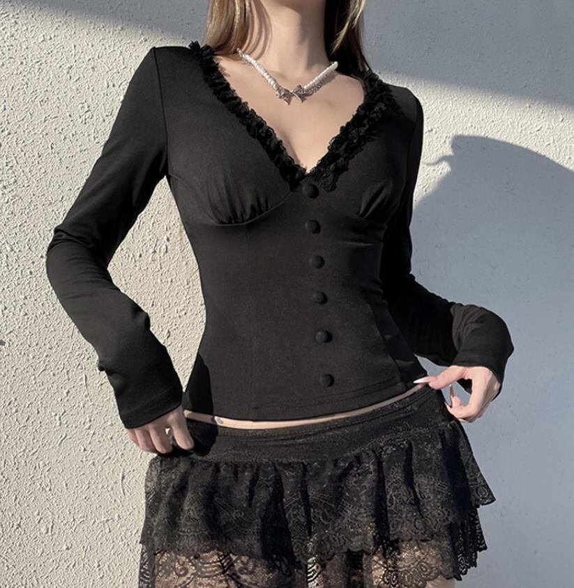秋冬新作 レディース 女 長袖 Vネック 無地 Tシャツ トップス インナー