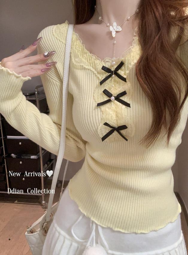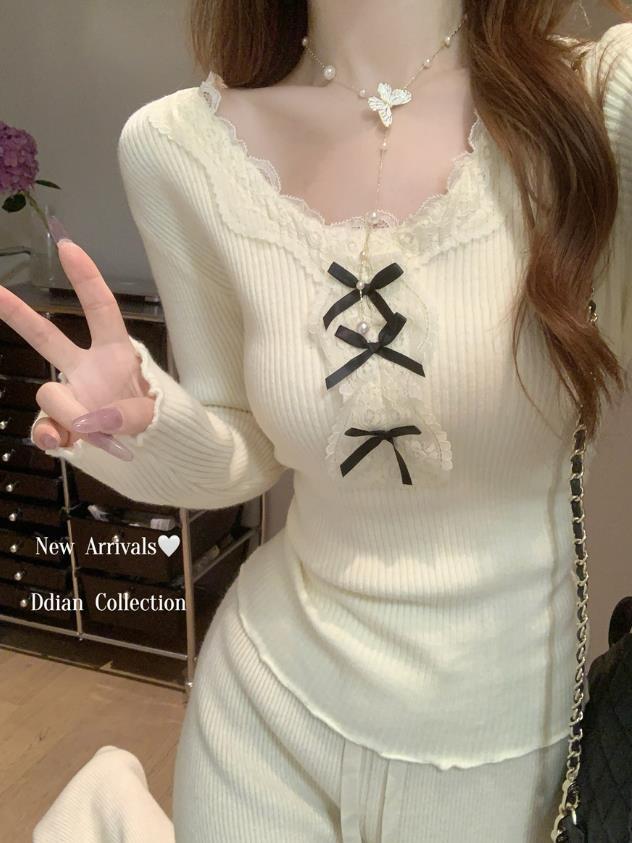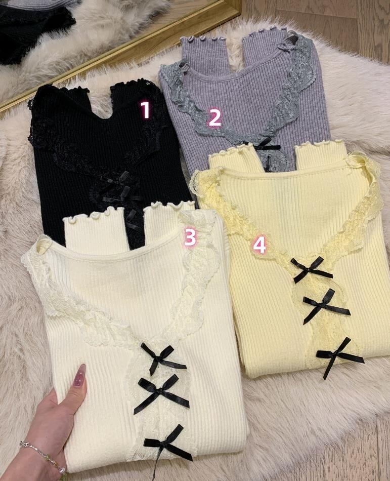4秋冬新作 レディース 女 長袖 無地 ニット Tシャツ トップス インナー カットソー