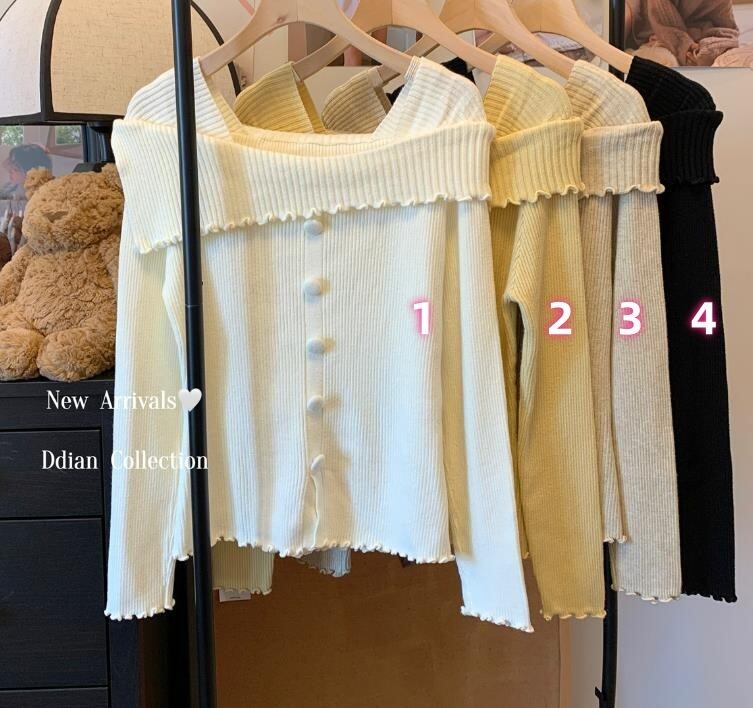 秋冬新作 レディース 女 長袖 無地 ボートネック ニット Tシャツ トップス インナー カットソー