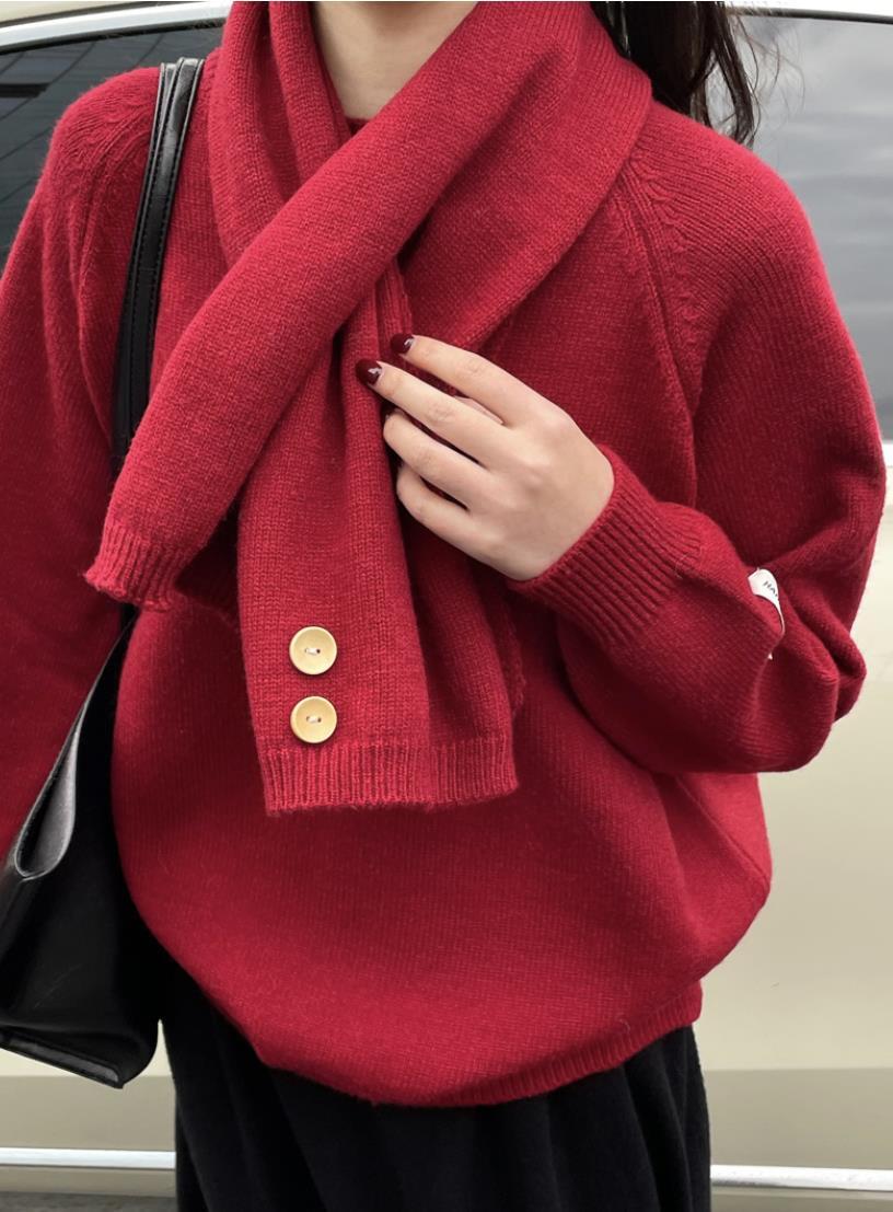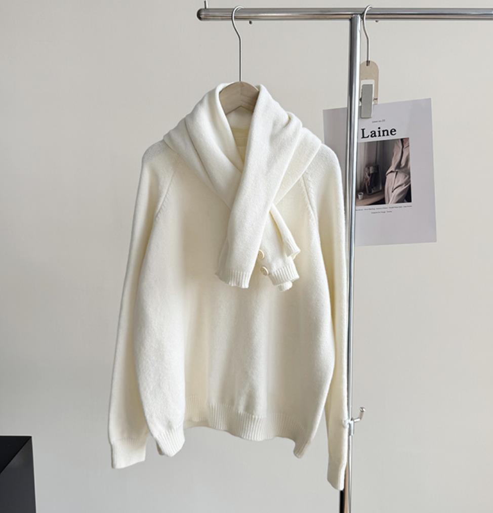 レディース ニット セーター カットソー トップス スカーフ付き 2024冬新作 4色
