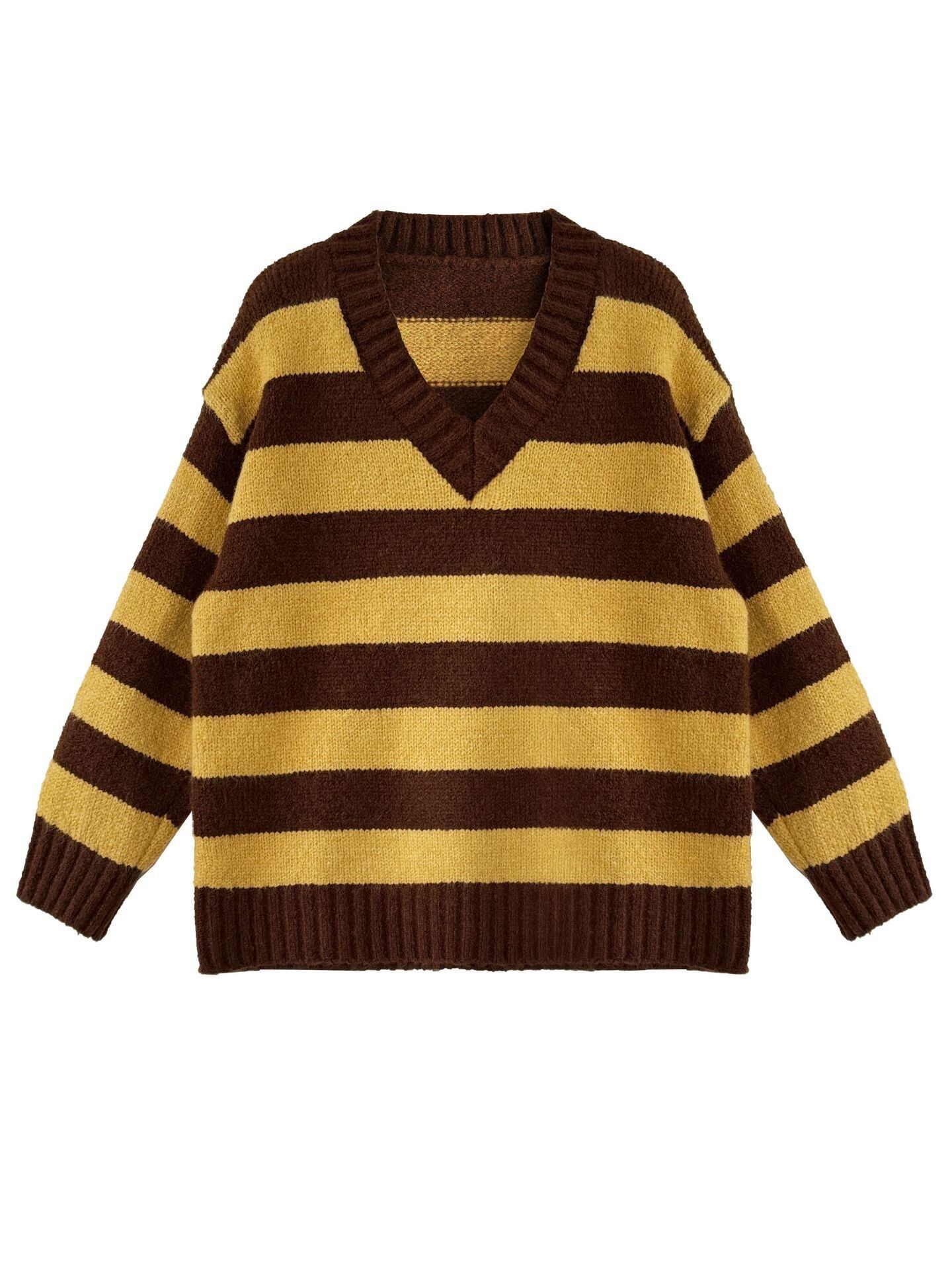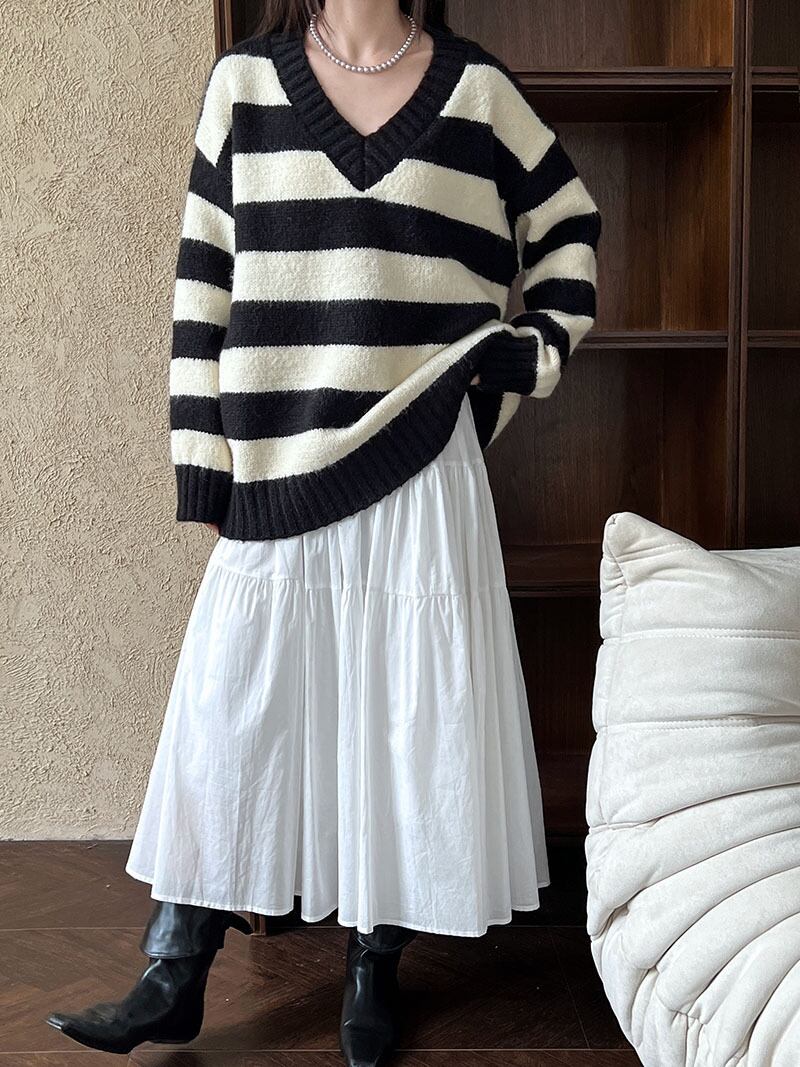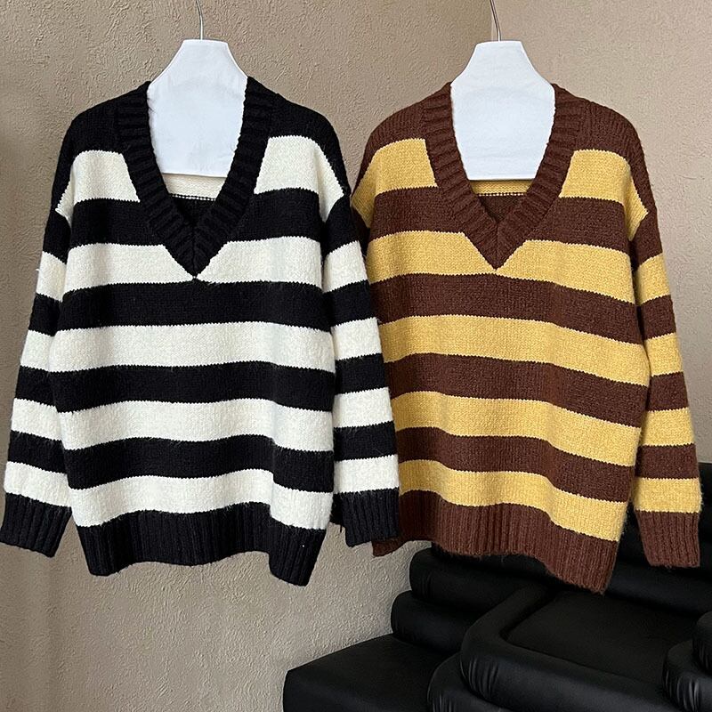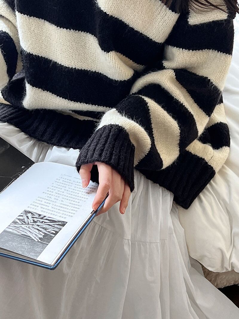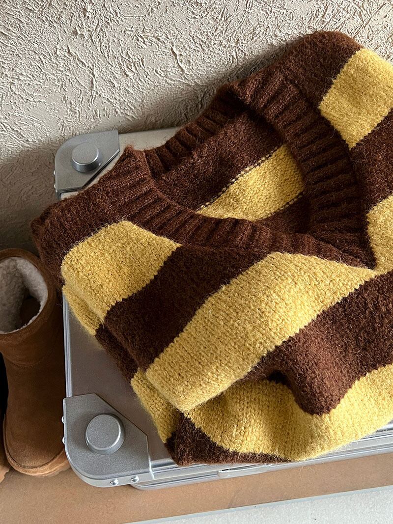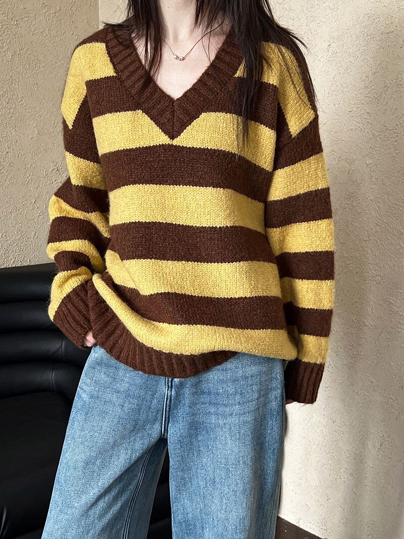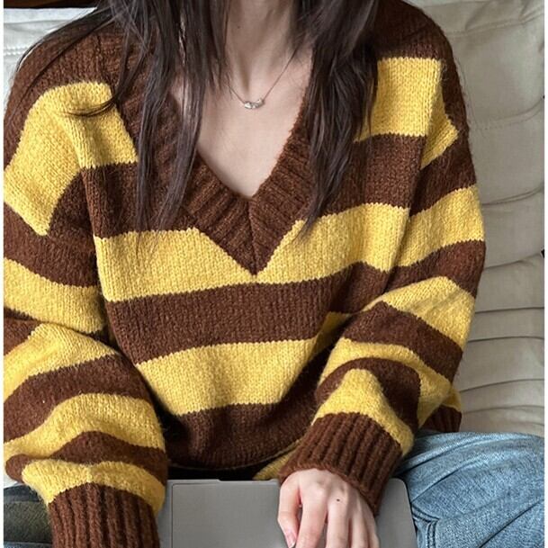 レディース ニット セーター 韓国風 トップス ストライプ コントラスト色