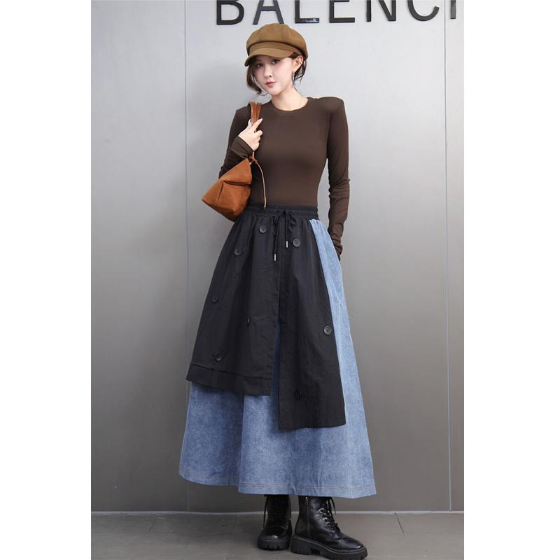 新作レディースファッション カジュアル パッチワーク デニム 半身スカート