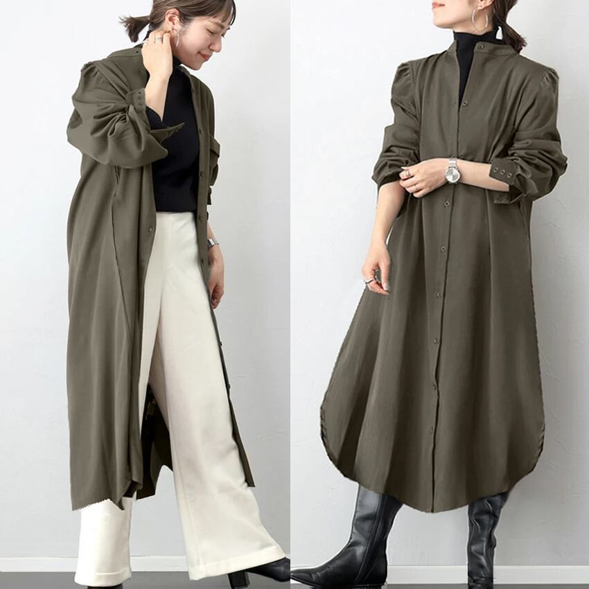 レディースファッション カジュアル シンプル 長袖シャツ ゆったり長め上着