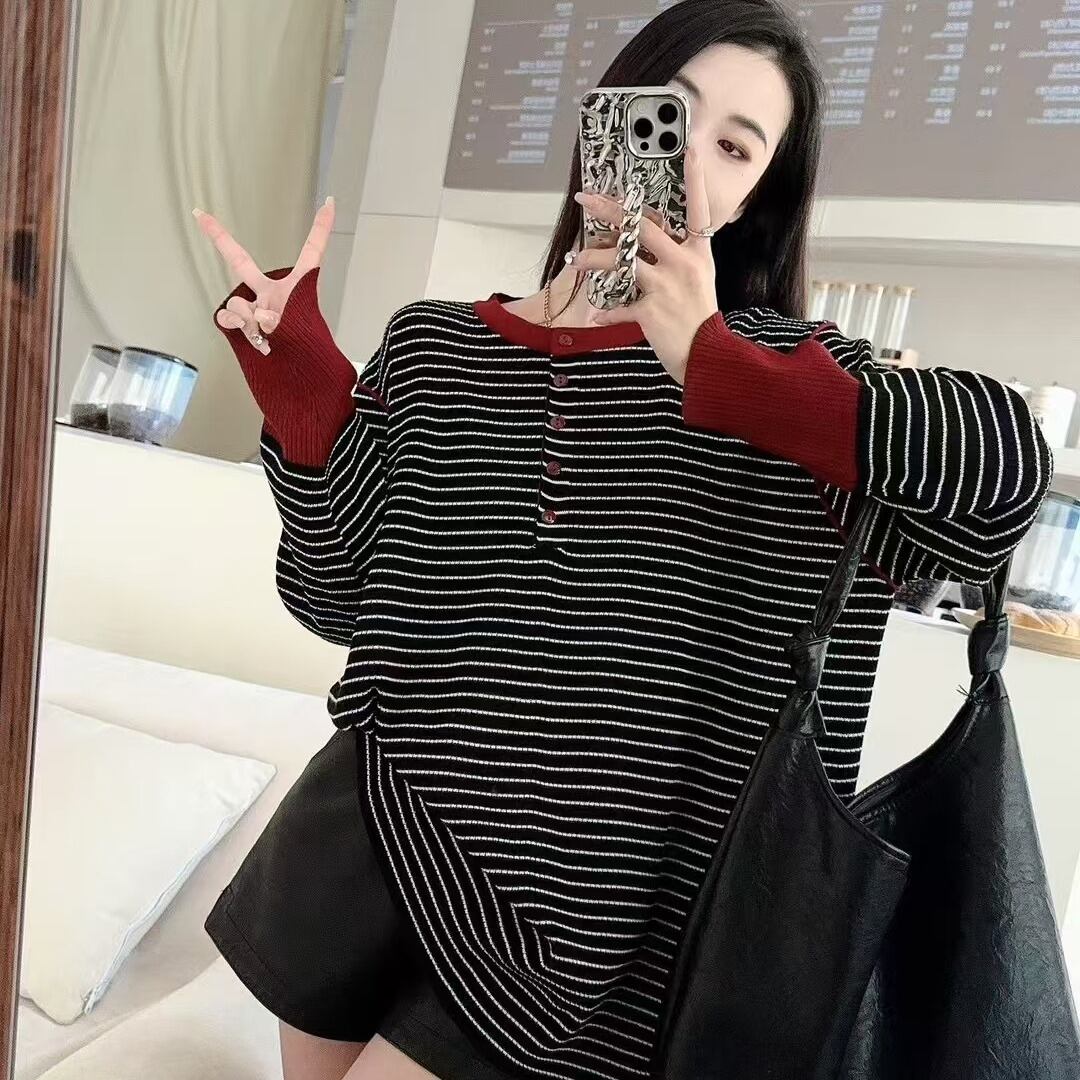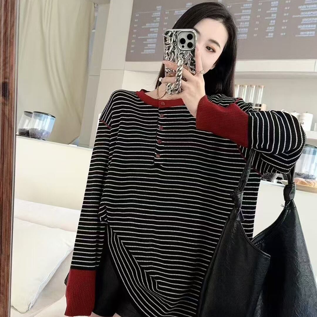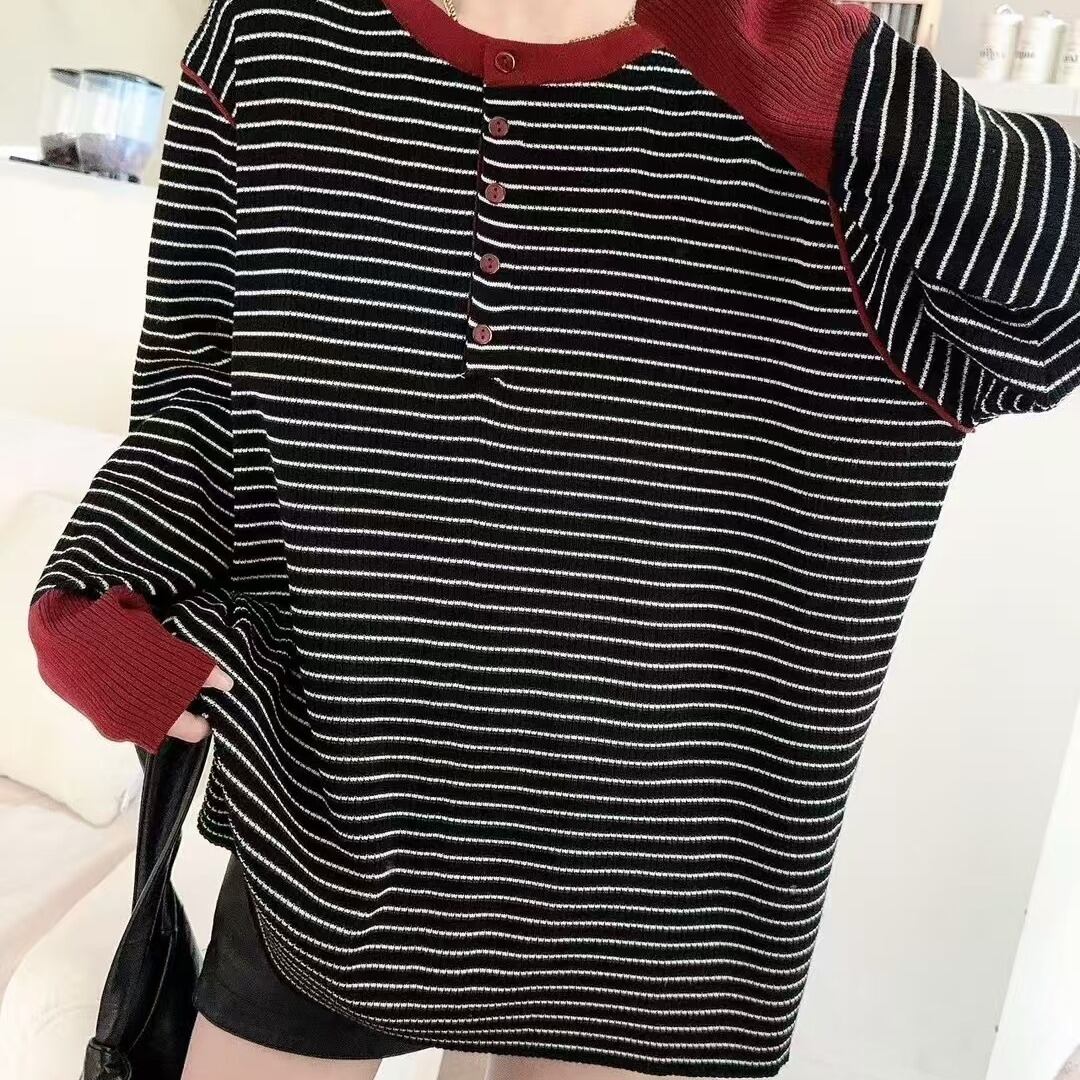 レディースファッション カジュアル プルオーバー ストライプ トップス