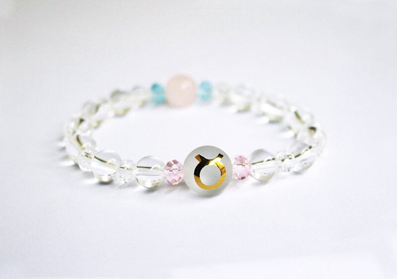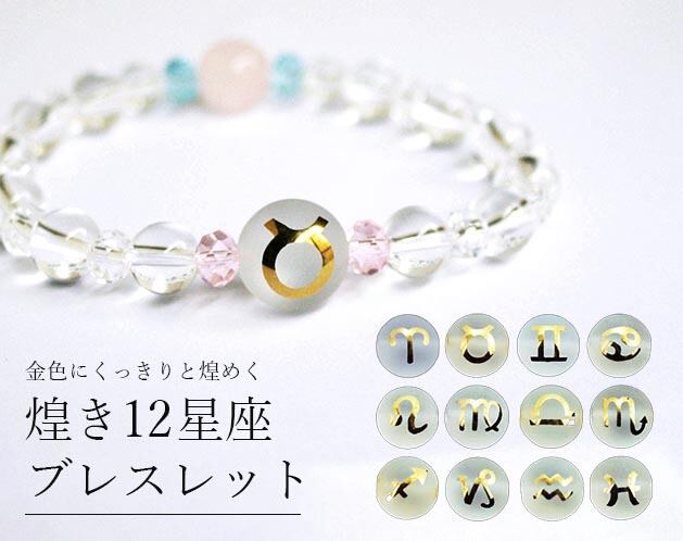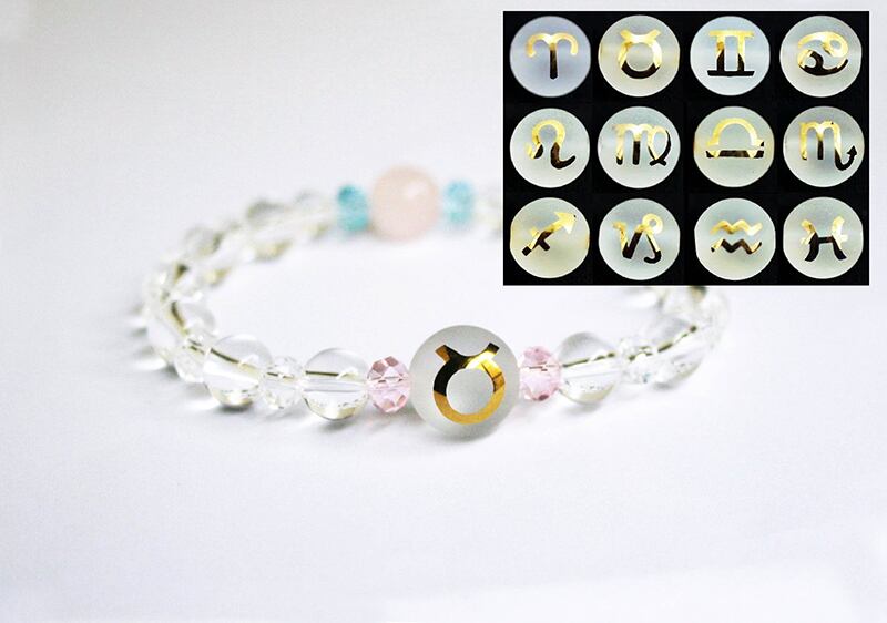 ★水晶丸玉に金色にくっきりと煌めく「12星座」のブレスレット!