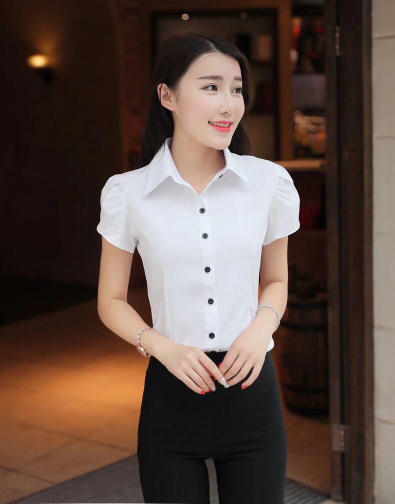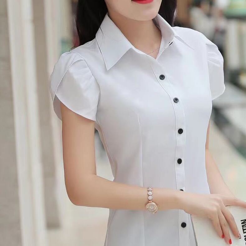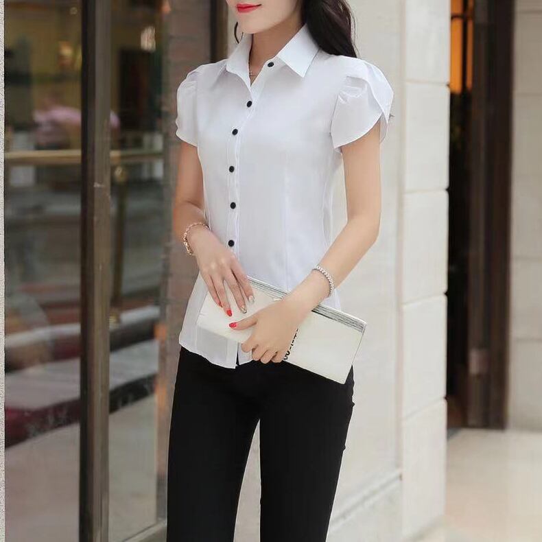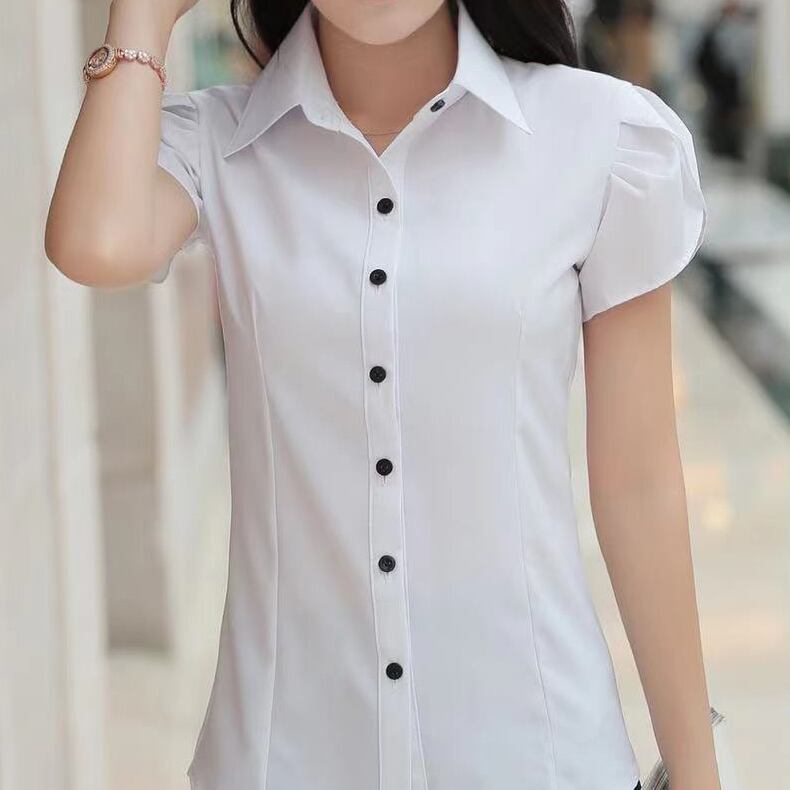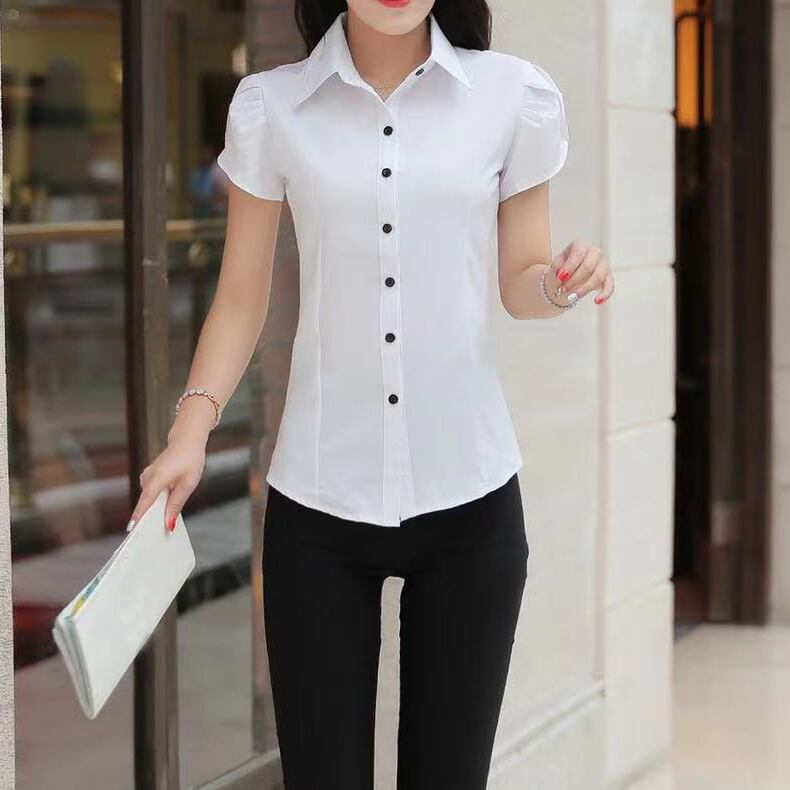 黒ボタン 半袖 ワイシャツ オフィスレディ OL通勤