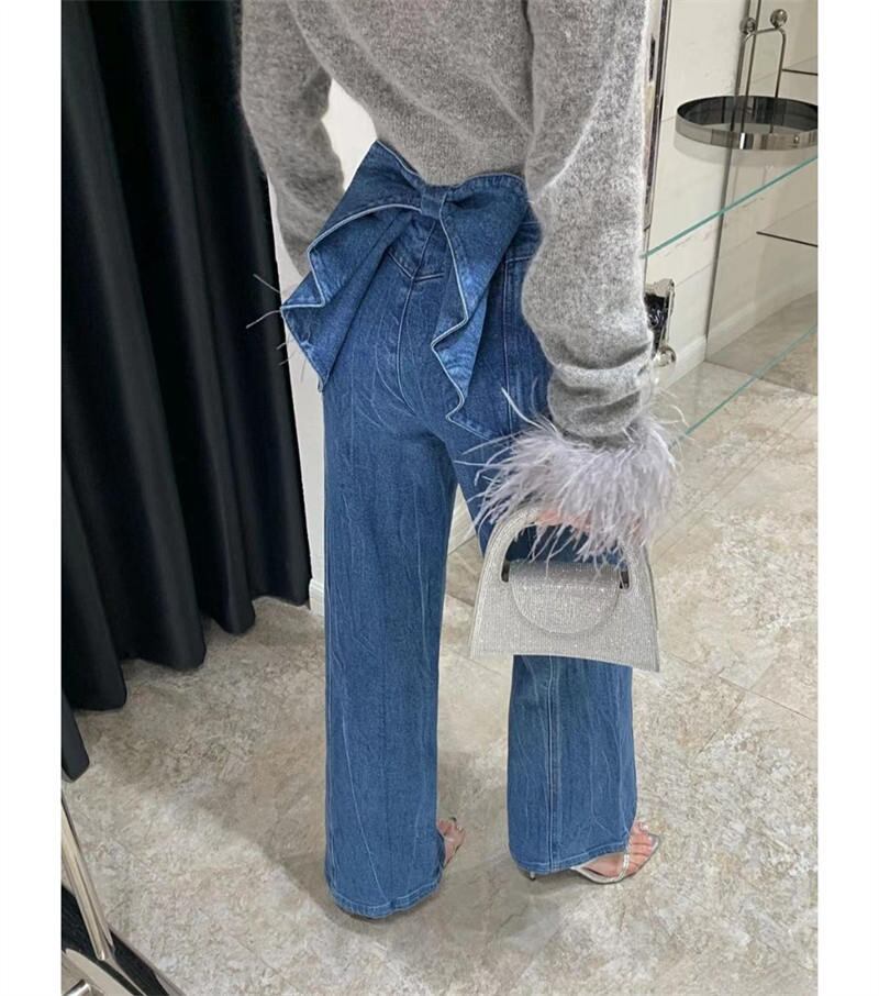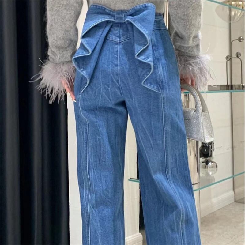 2025年春INS新作 韓国風 デニム ズボン ジーンズ リボン ボトムス 人気