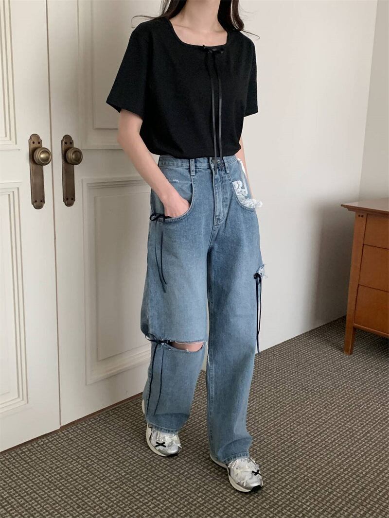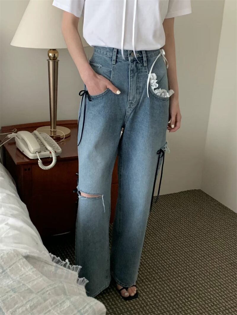 2025年春INS新作 韓国風 デニム ズボン ジーンズ ボトムス 人気