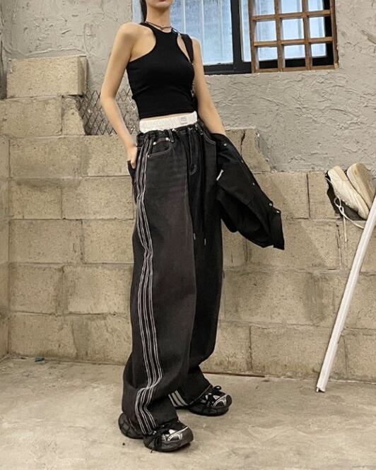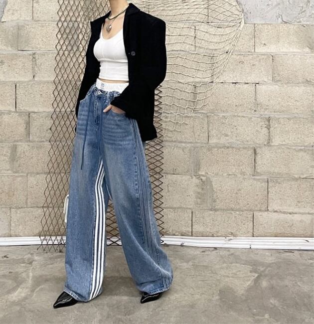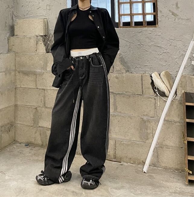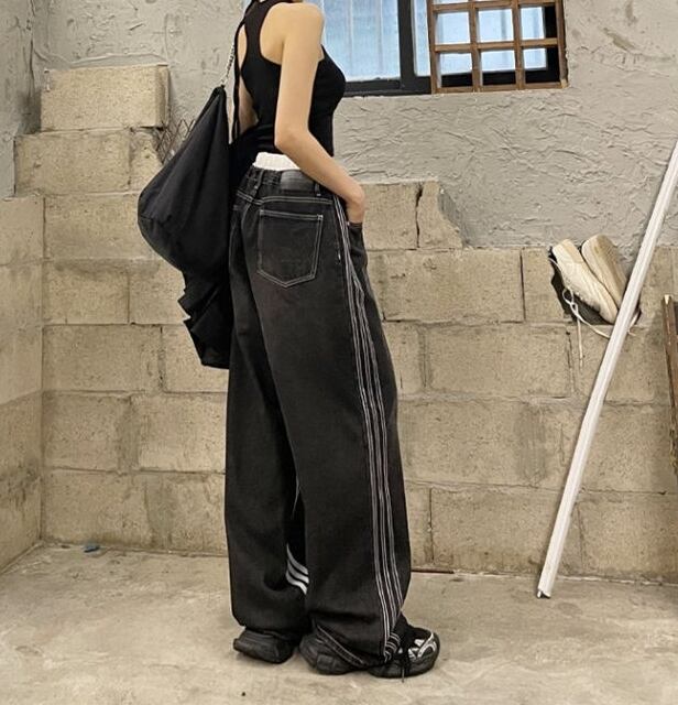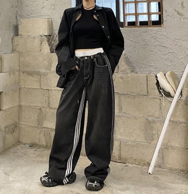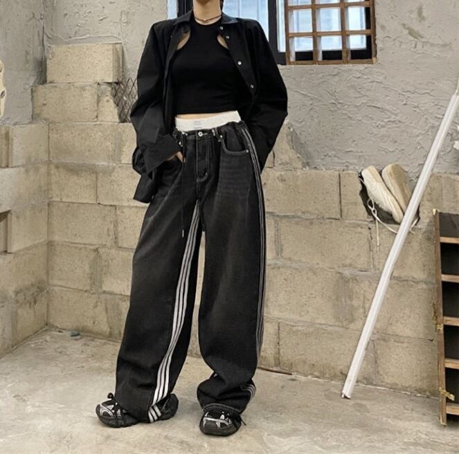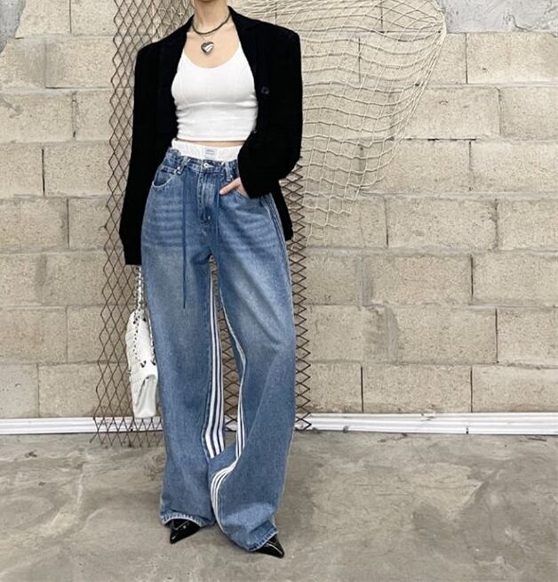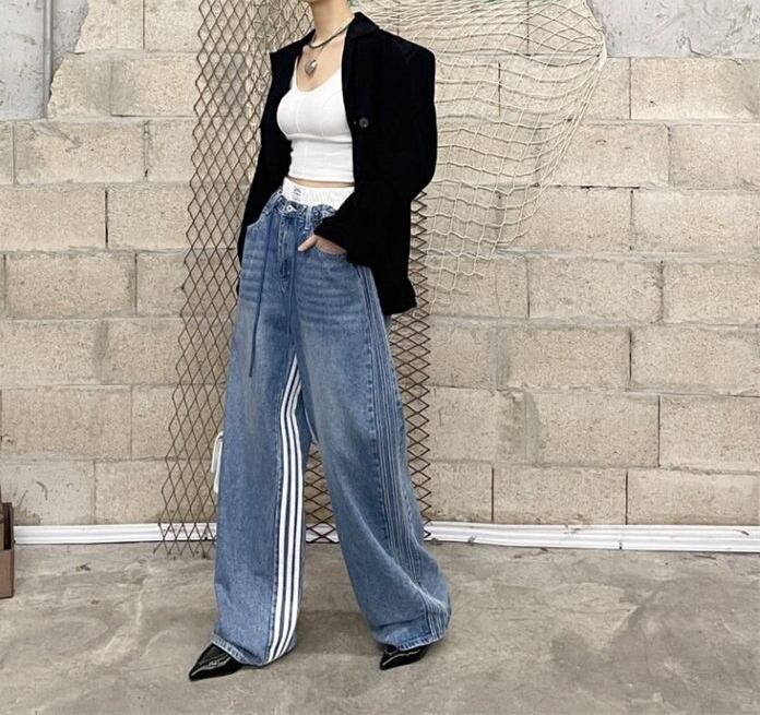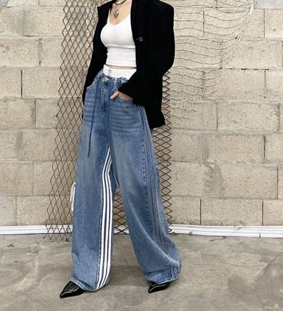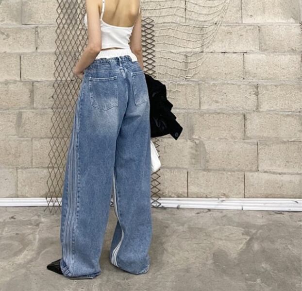 2025年INS春新作 韓国風 気質 人気 カジュアル おしゃれ ロング デニムパンツ